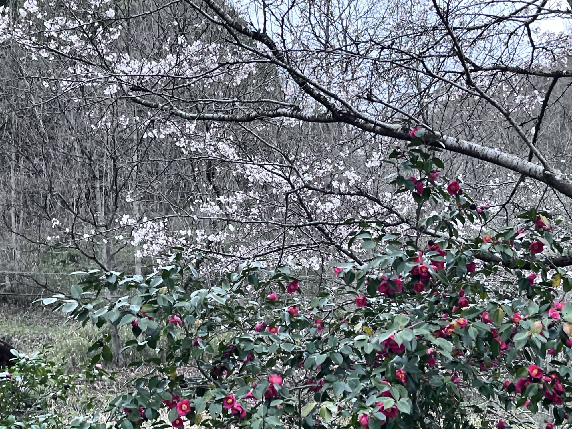 桜の下に椿。