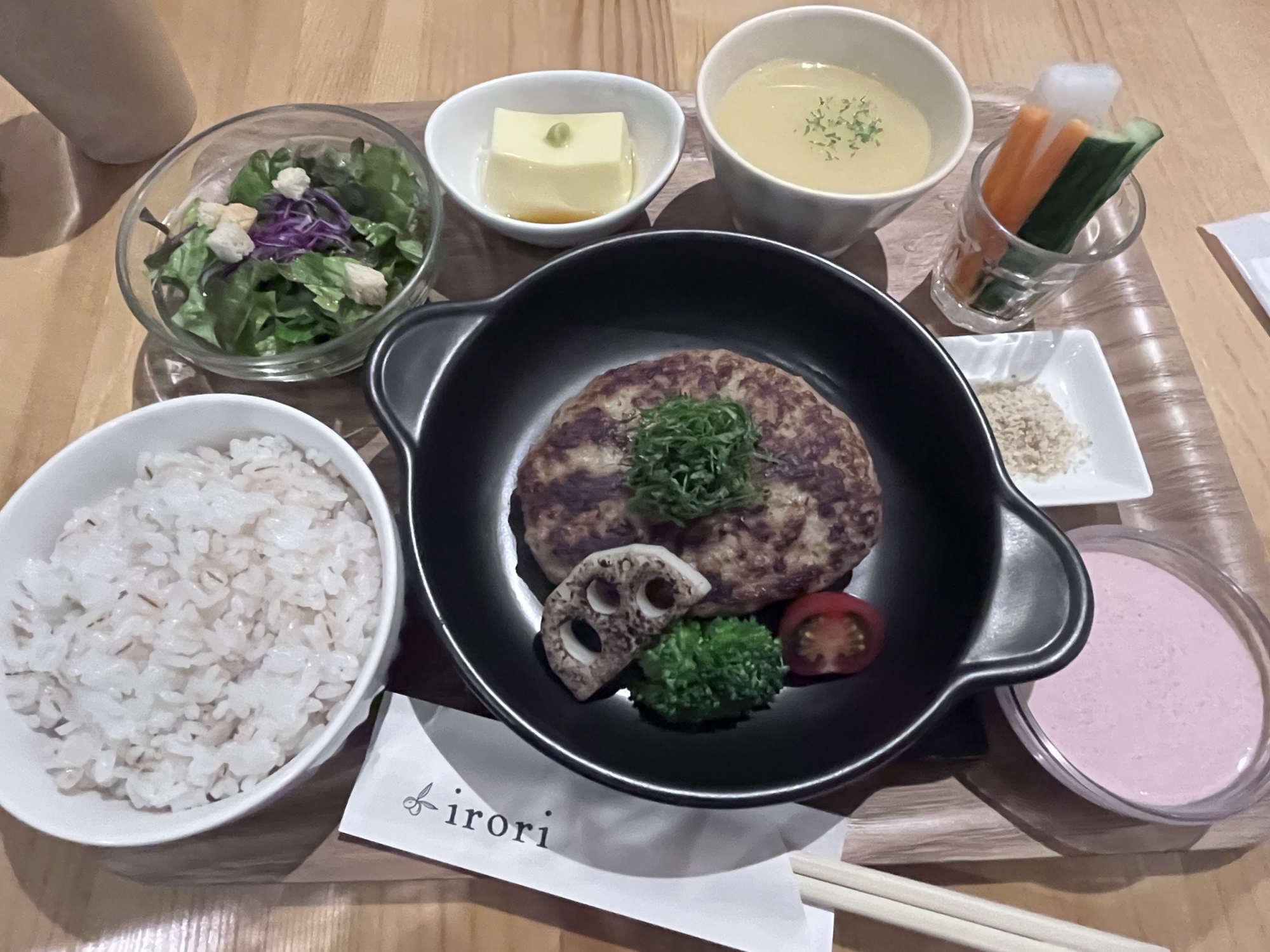 ハンバーグのお店・・満員です、そして、ボクの選択は、シソ明太子のソース。美味しい。daughterはチーズトマト、wifeさんはわさびおろし。