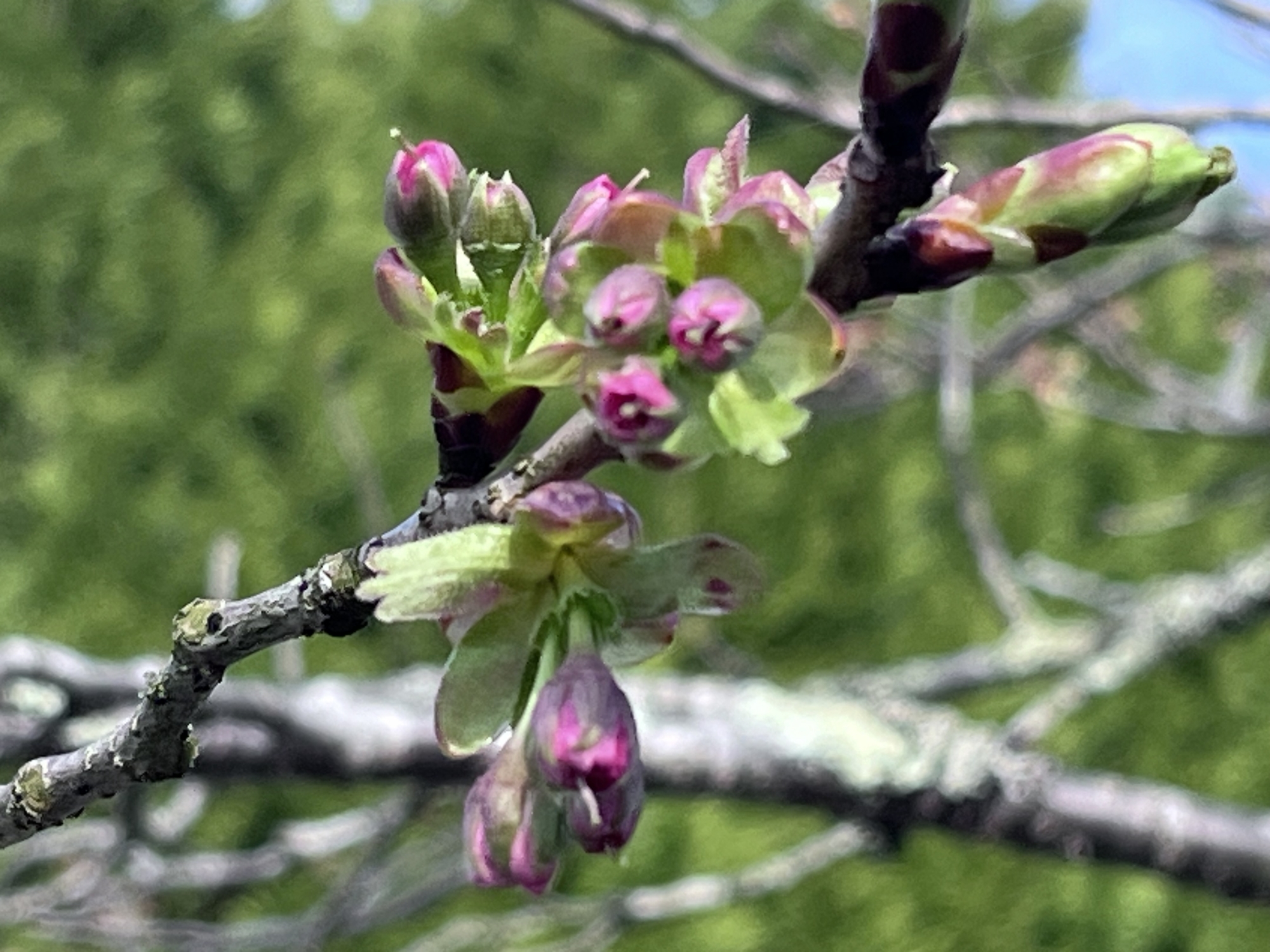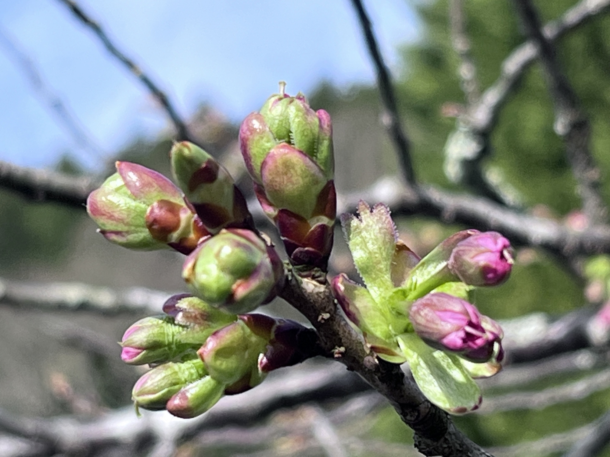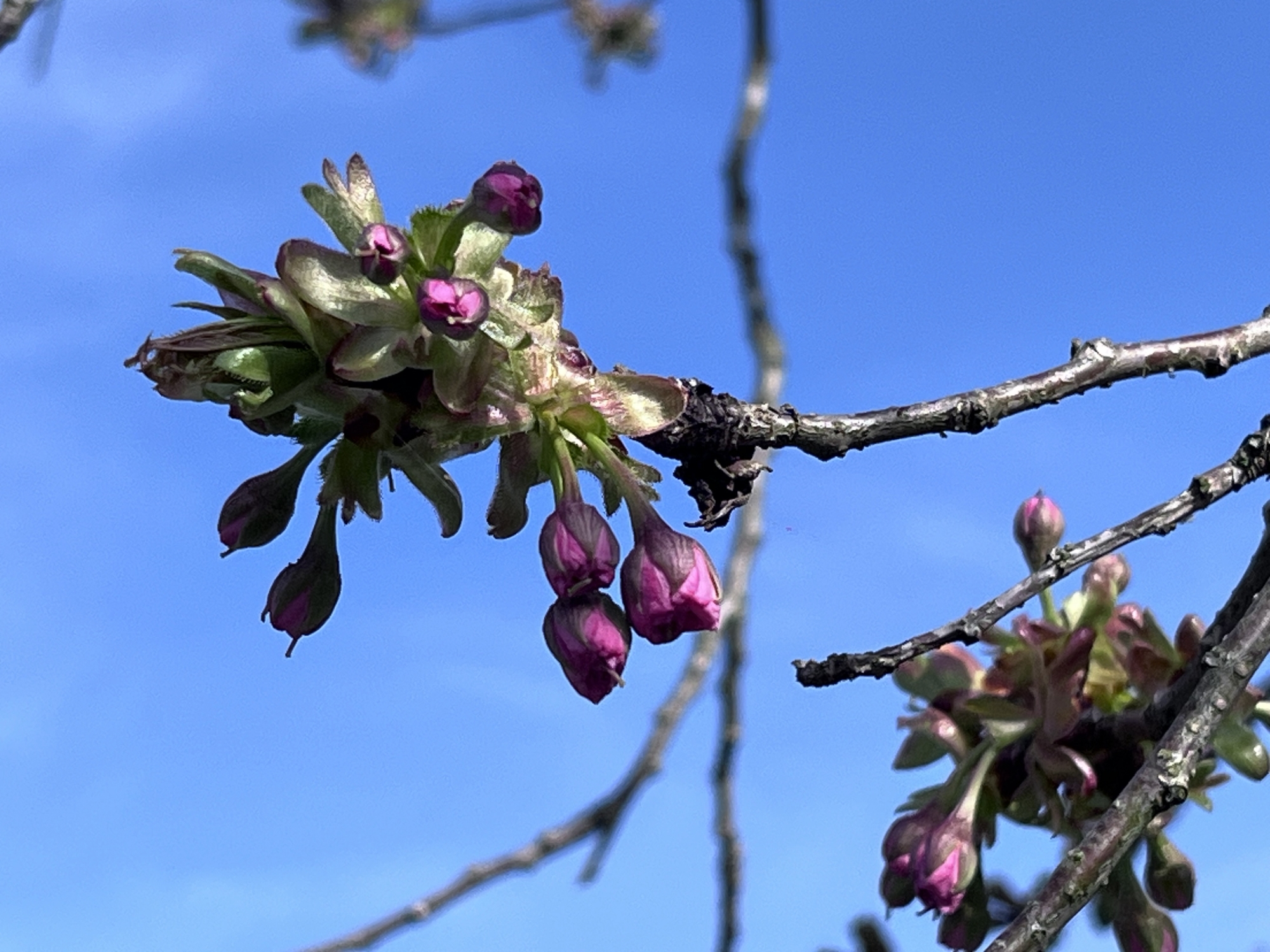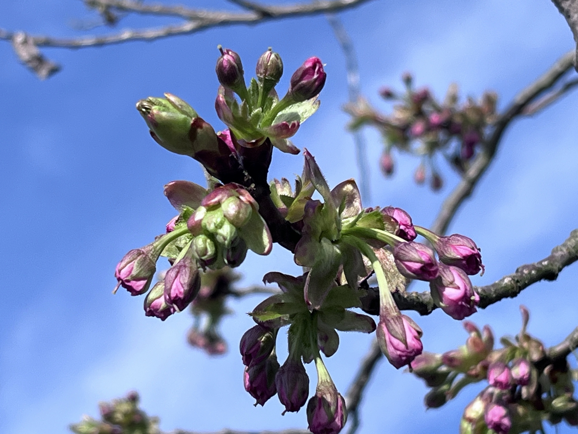 ふれあい公園道路の八重桜の蕾・・・色付いてきました。