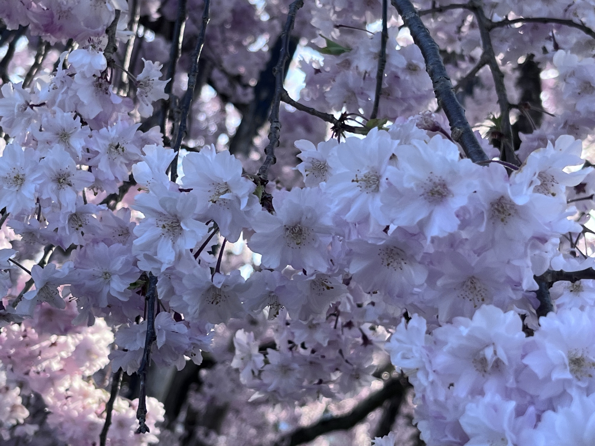 帰宅で、もう一度、職場裏手の染井吉野と枝垂桜。