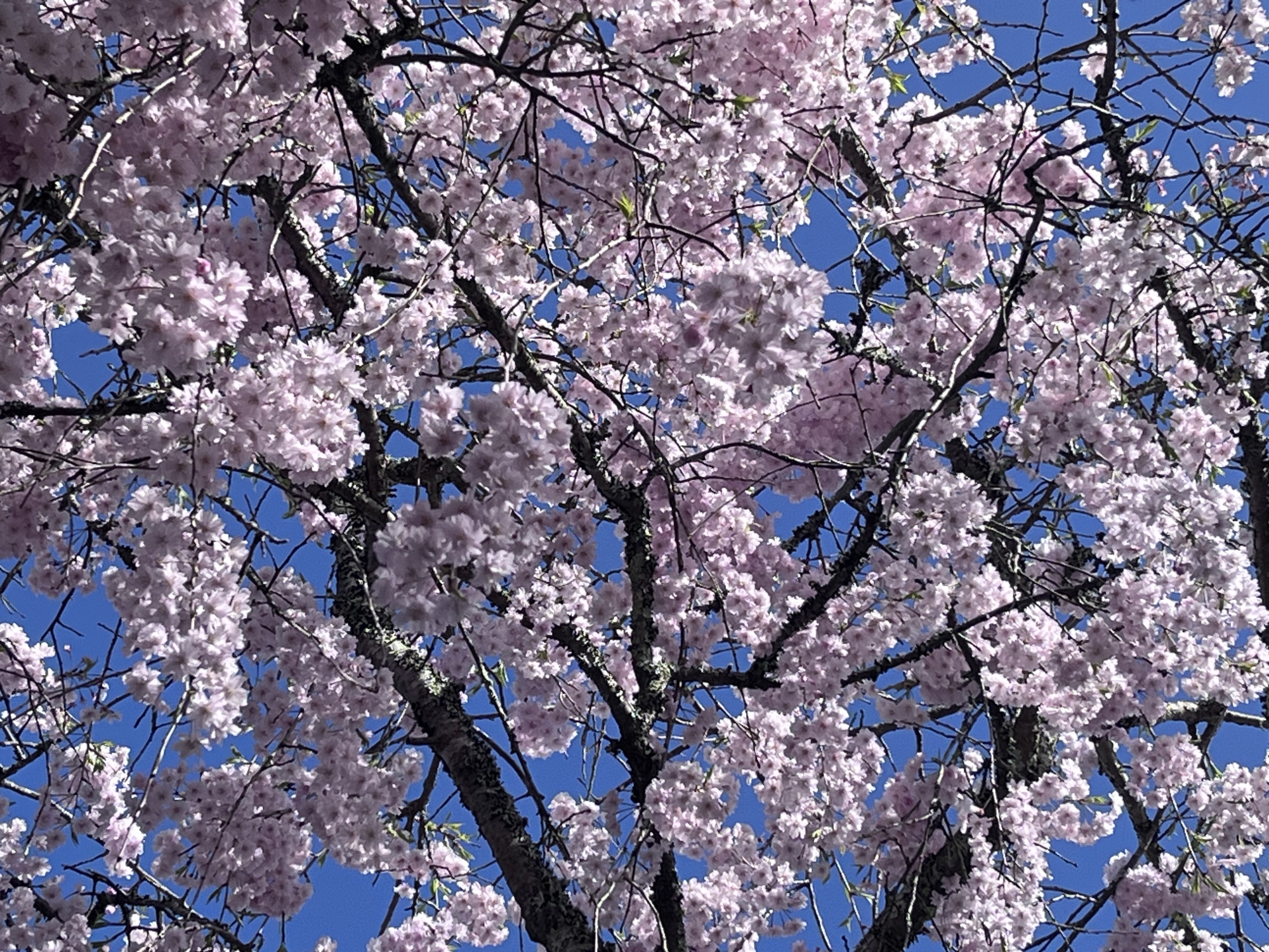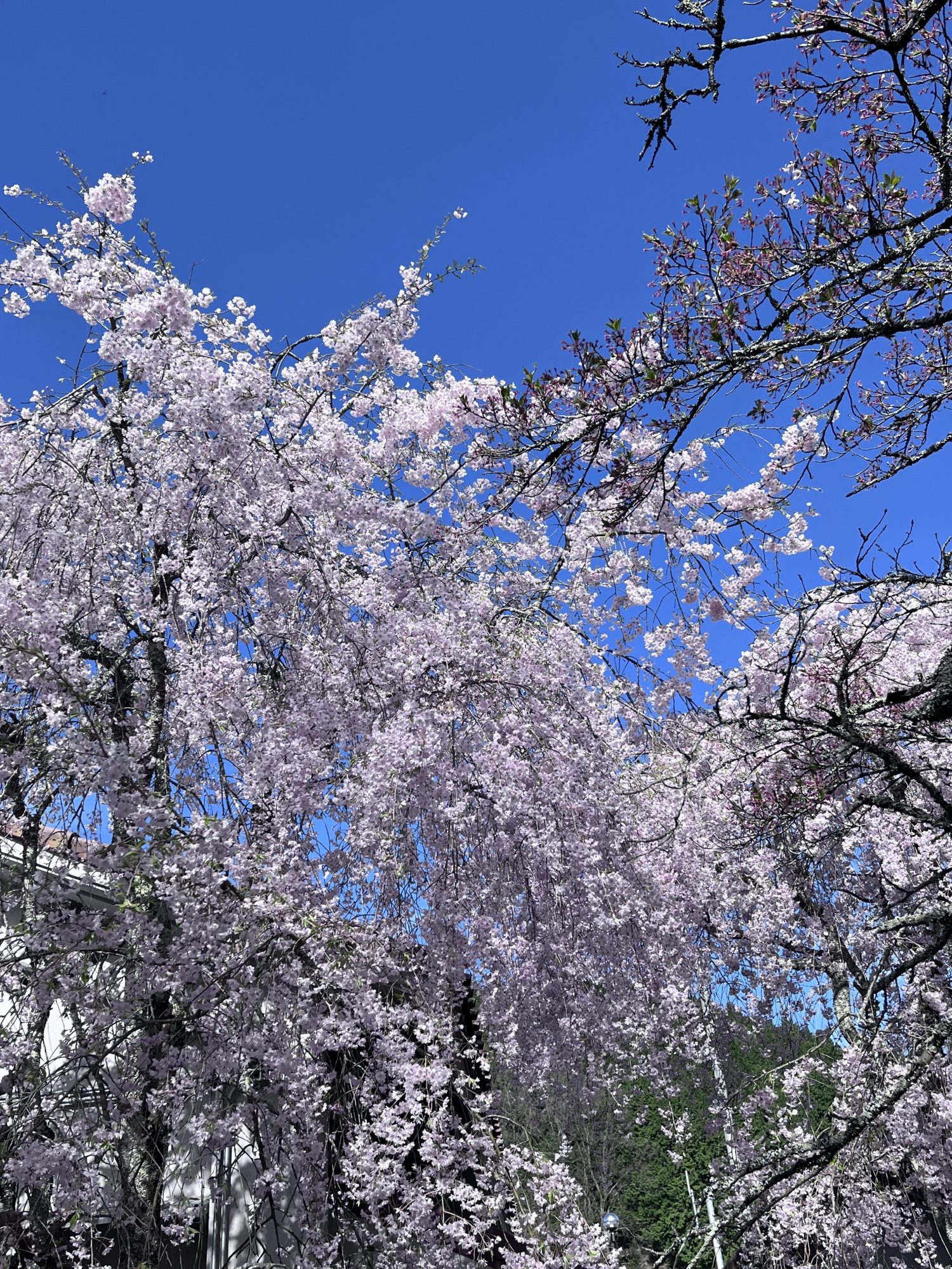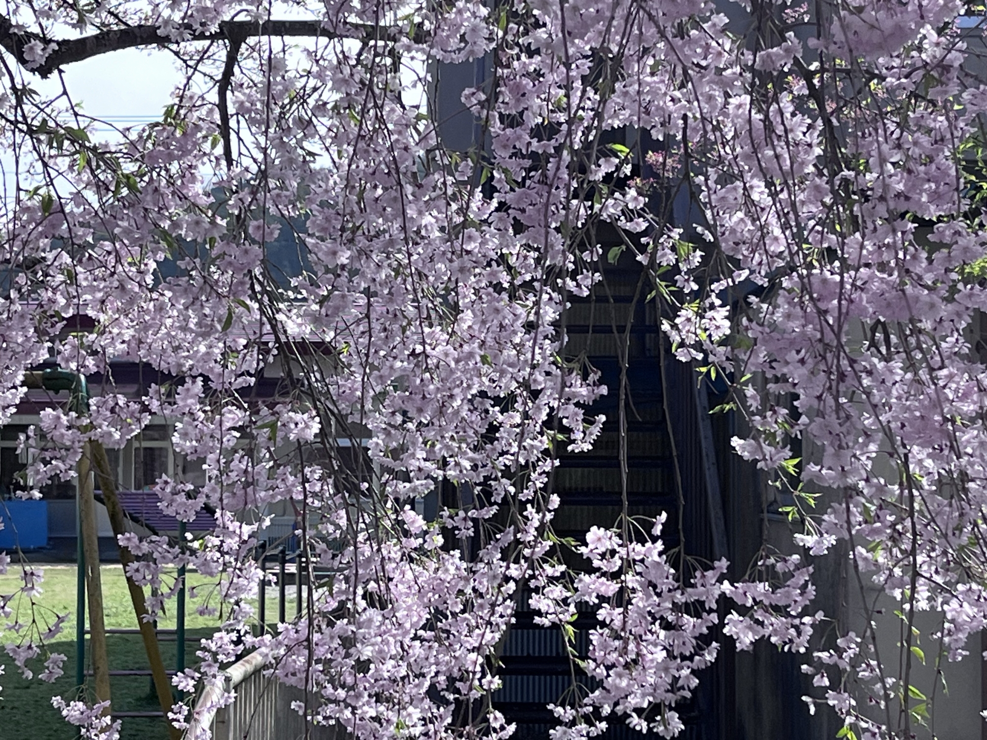 さて、社協のふれあいホールの裏手の(保育園の横の)枝垂桜は、まだ、満開!