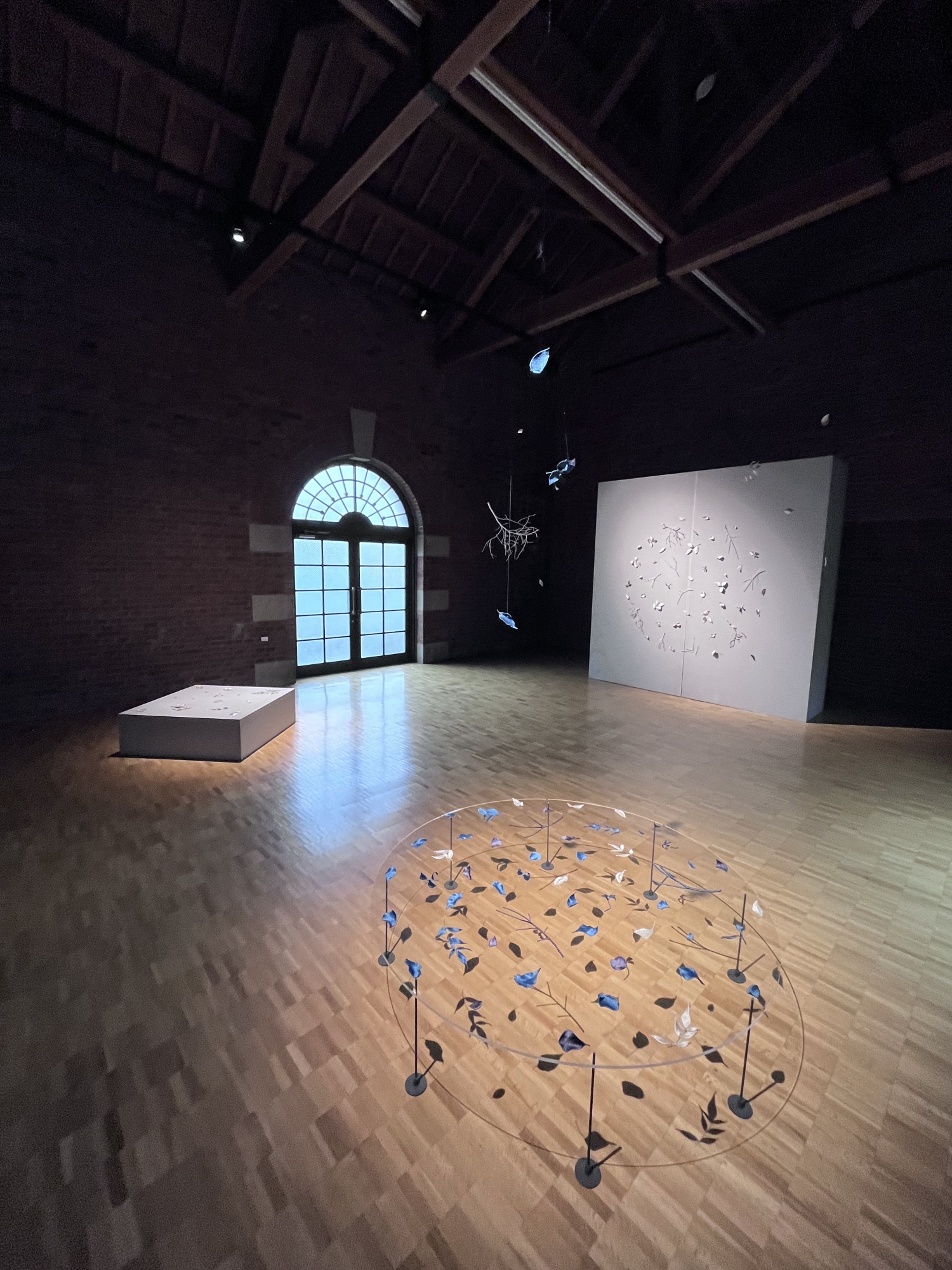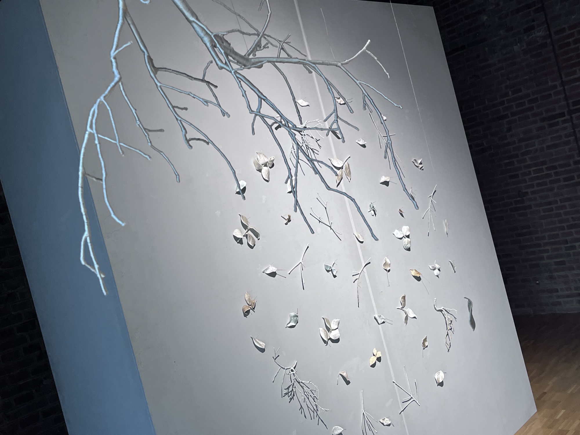 個展最後の週末で、作家さんもいらっしゃいまして、ついつい、購入!!! 本当の木の葉の加工だそうで、繊細で、ステキですし、展示具合でも、変化するよう。