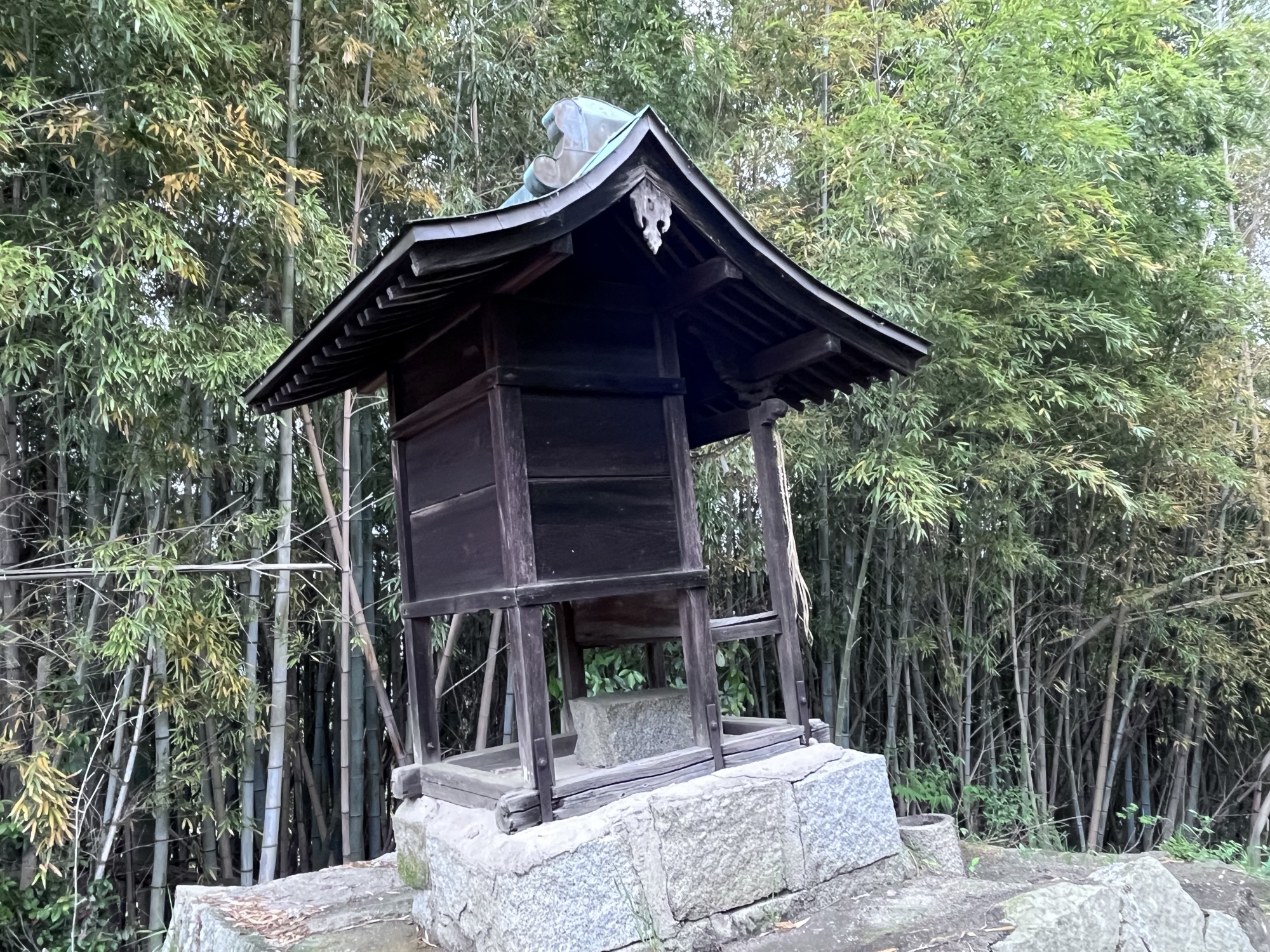 さて、目的地は・・・このこんもりとした先、岩倉神社でした。