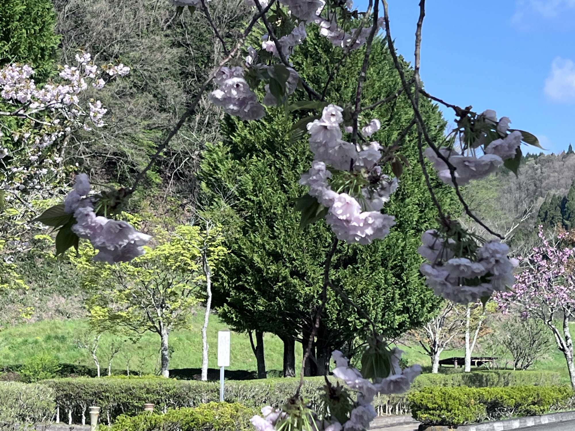 そして、ふれあい通りも・・・満開の八重桜は青空の背景に良く似合います。