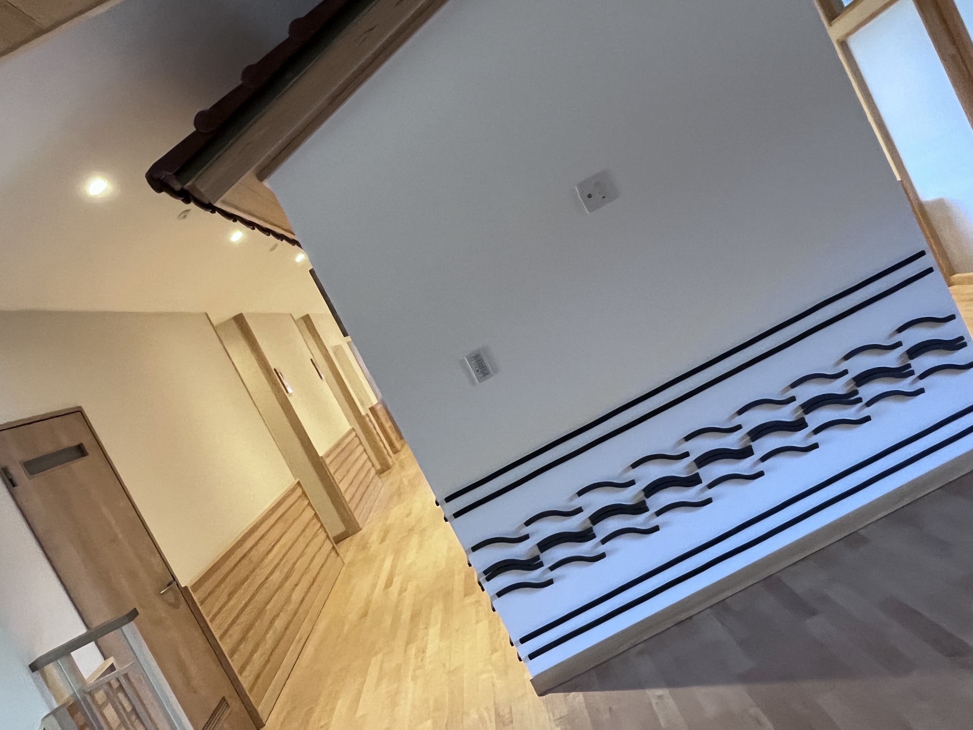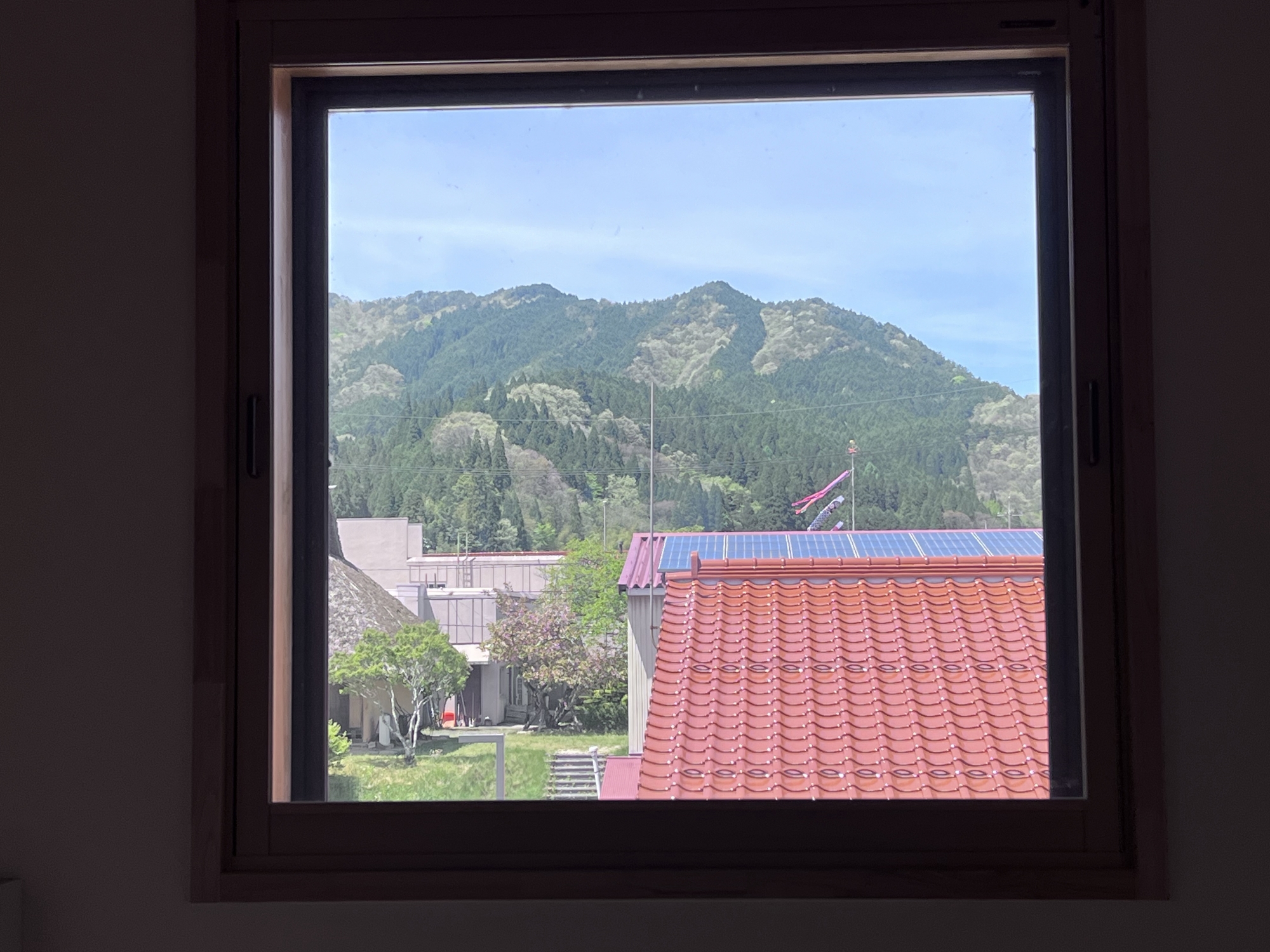 今日は二階の教育委員会・・・階段の窓は、まるで風景がの額縁の様。