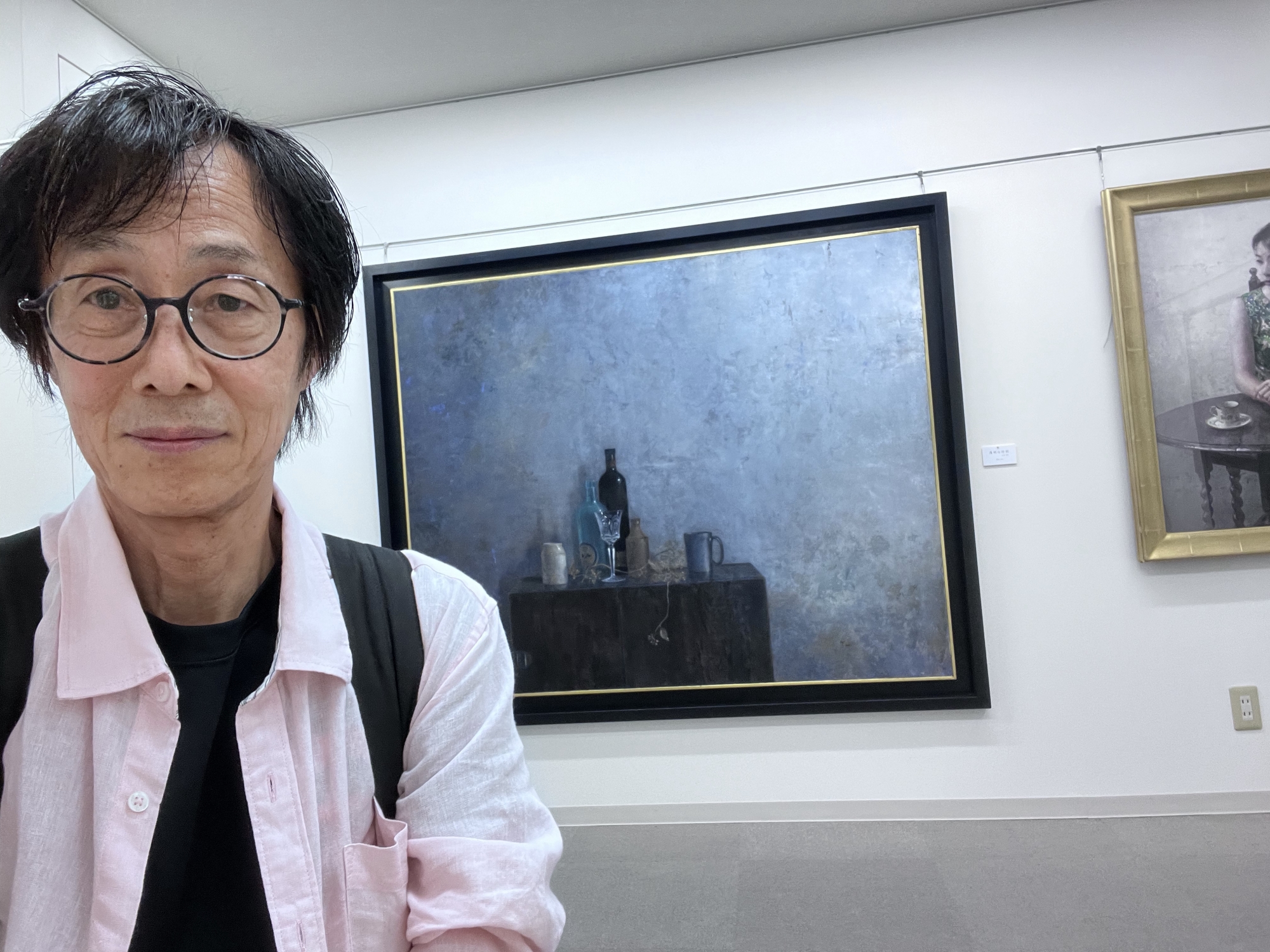 黒木さんの絵画の前で・・・ポーズ。