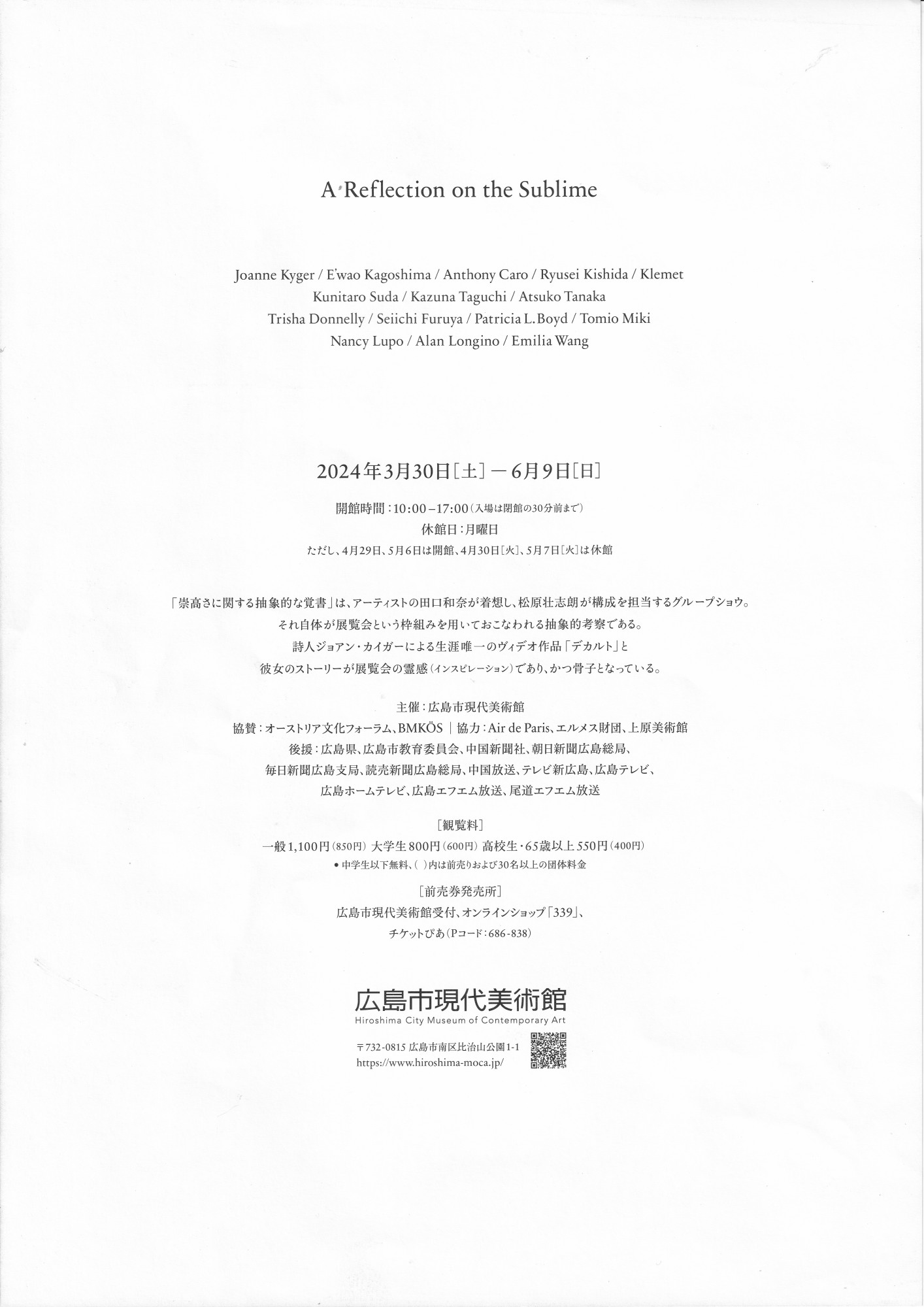好きな画家である黒木ゆりさん。2021年に「アートアイきさ」での個展で気に入ったのですが・・なんと、この間、お手紙を頂戴して・・・内科医さんであると。まぁ、びっくり、で、大型連休周辺で、福屋(デパート)のギャラリーが5/01まで。他、後半なら、広島県立美術館で、広島日展会展に100号の大作、さらに、同じ教室のグループさんなのかな、画材店のギャラリーでの展示があるとのこと。・・調べていて、ついでに、広島市現代美術館/MOCA・・・も面白そうなので、いっそ広島まで行こうってことで、行ってきました。