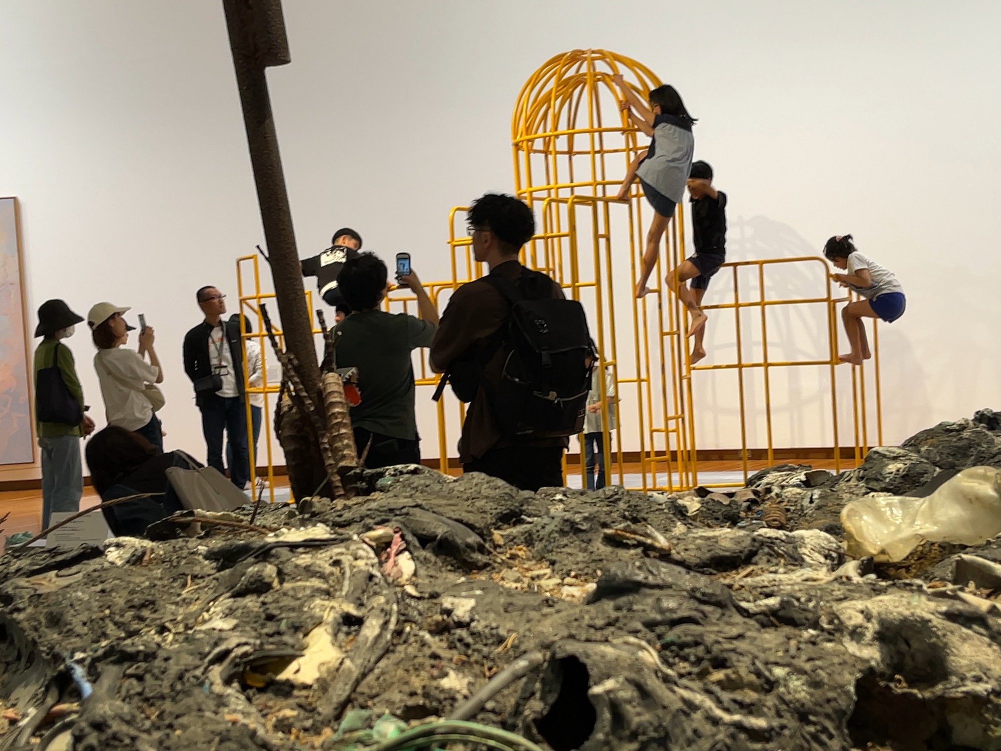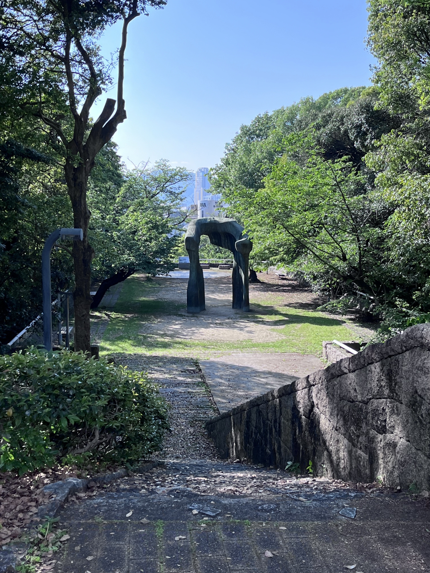 子どもたちが遊んでいるジャングルジムのシャドーは原爆ドーム。