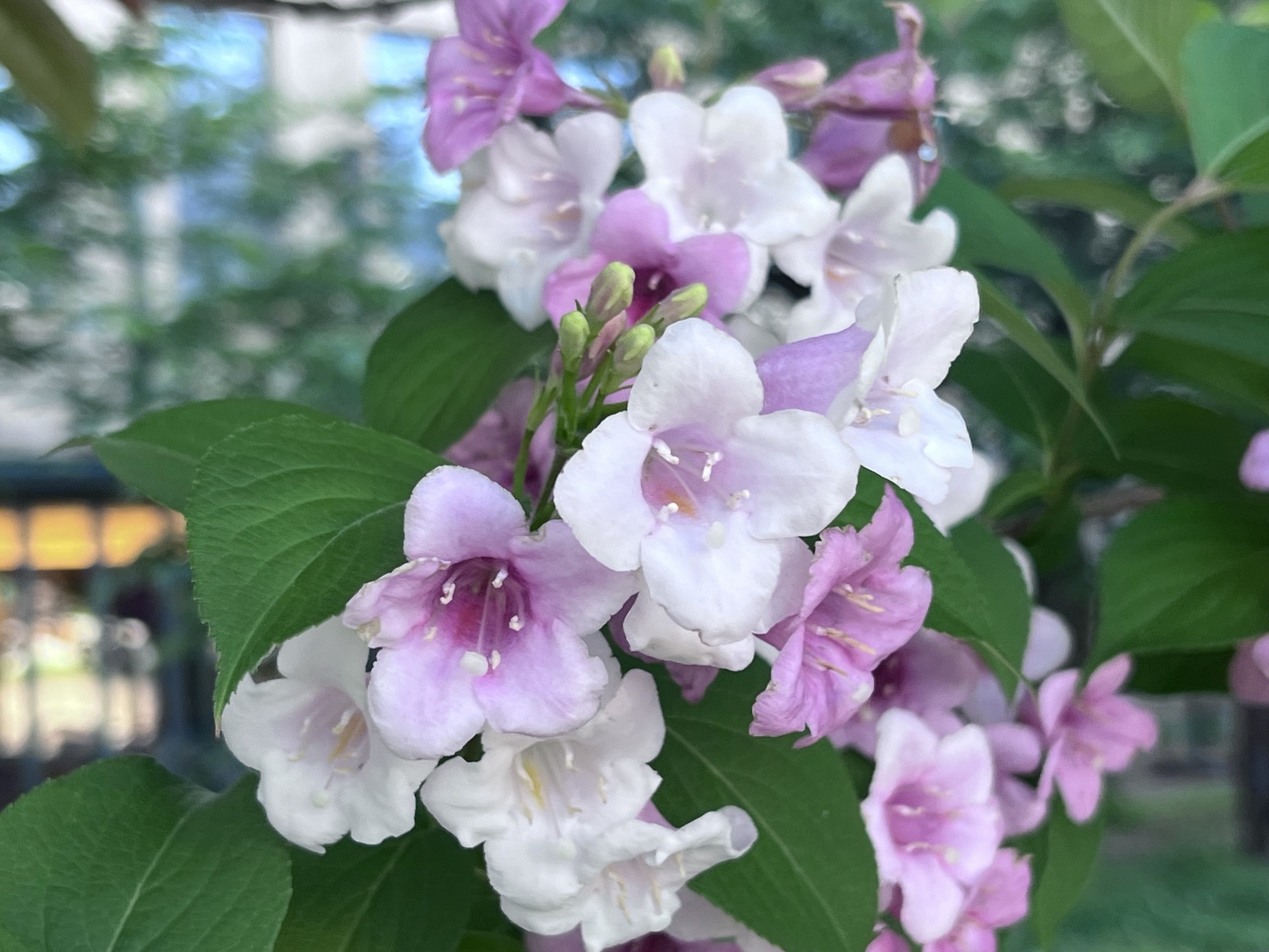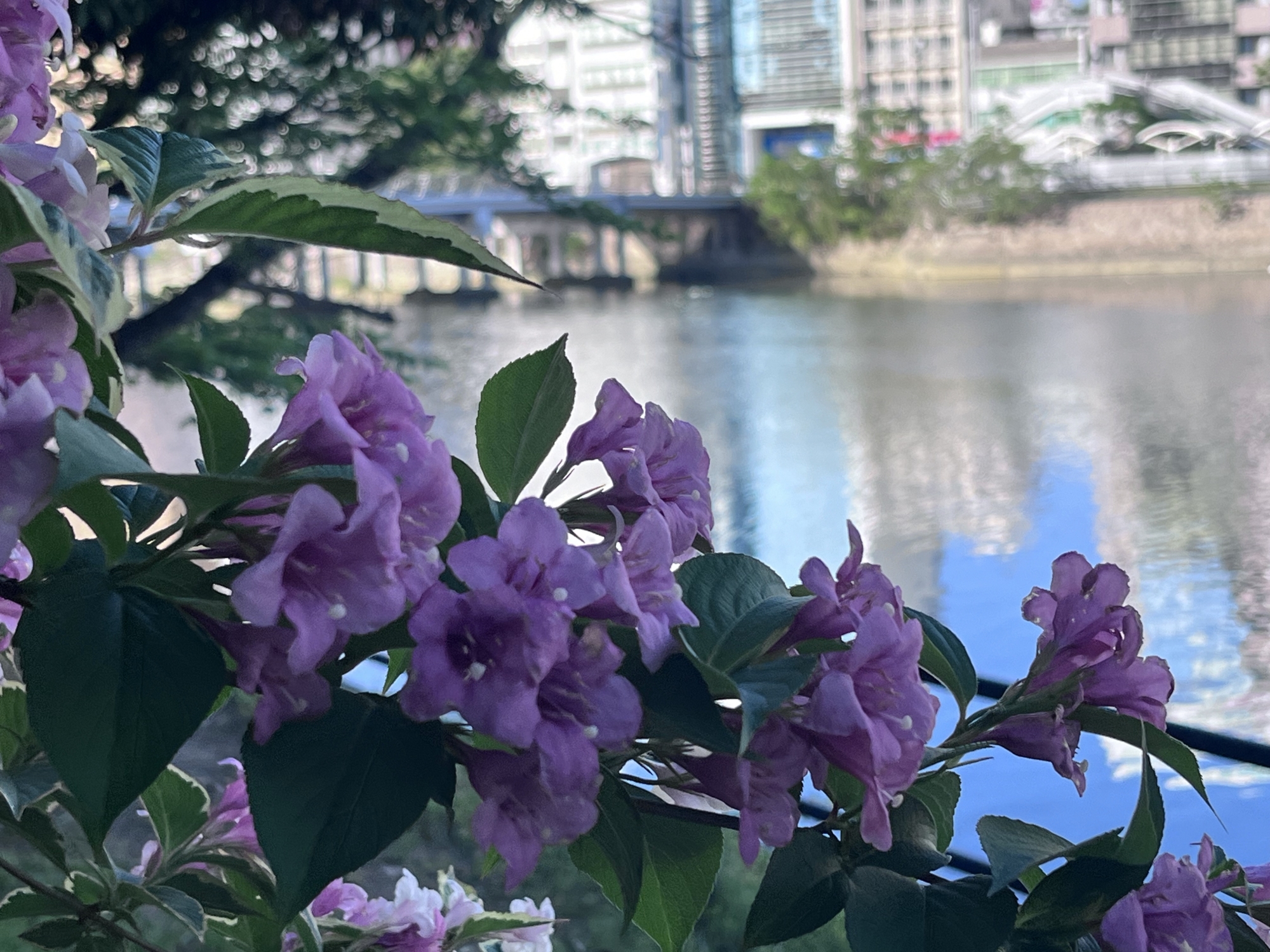マンションも立ち並んでいて・・・花。タニウツギ。