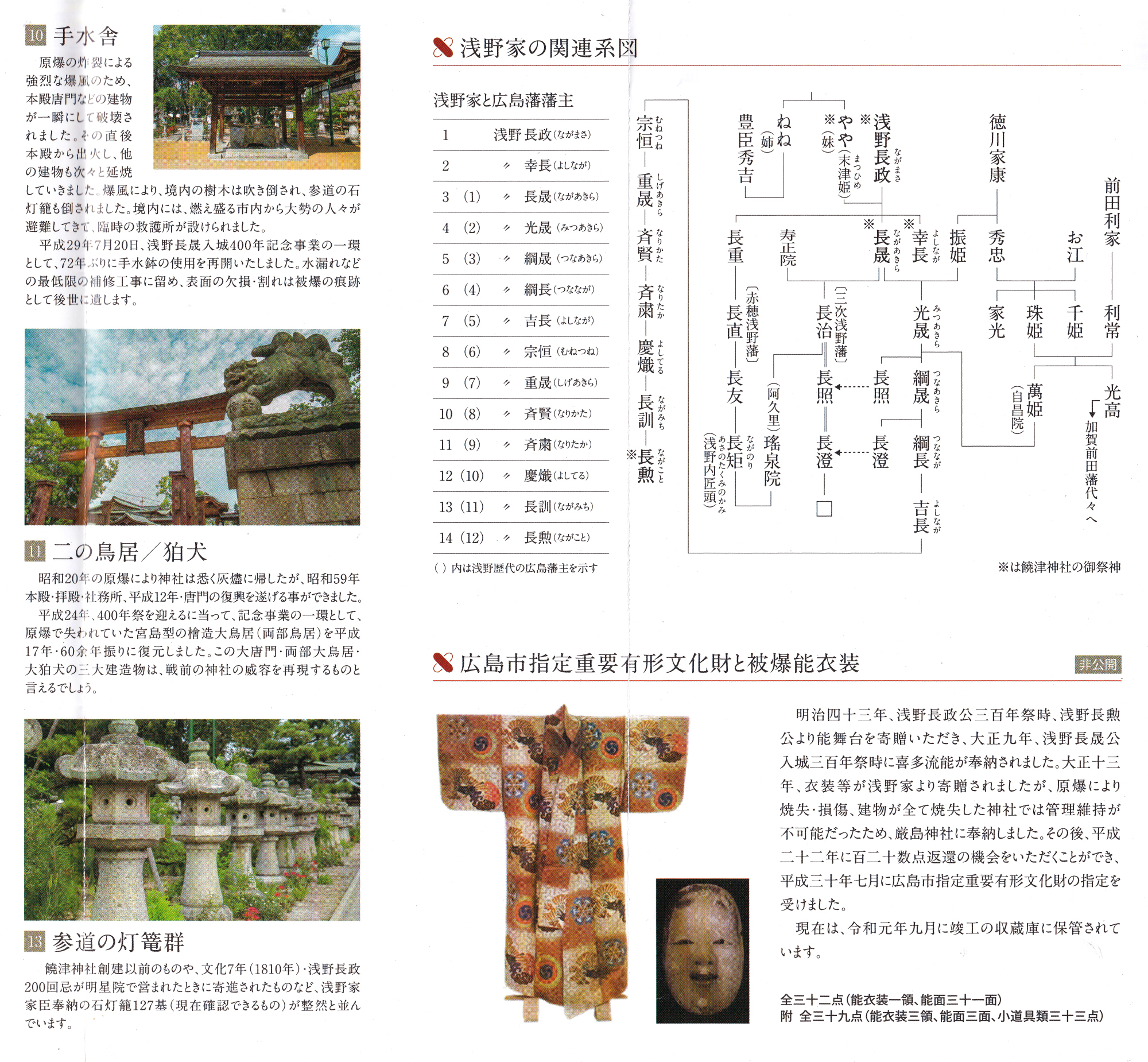 【旧社格は旧県社。主祭神は、浅野長政、幸長、長晟。相殿神として、長政室の末津姫(やや)。地元では「にぎつさん」と呼ばれている。】