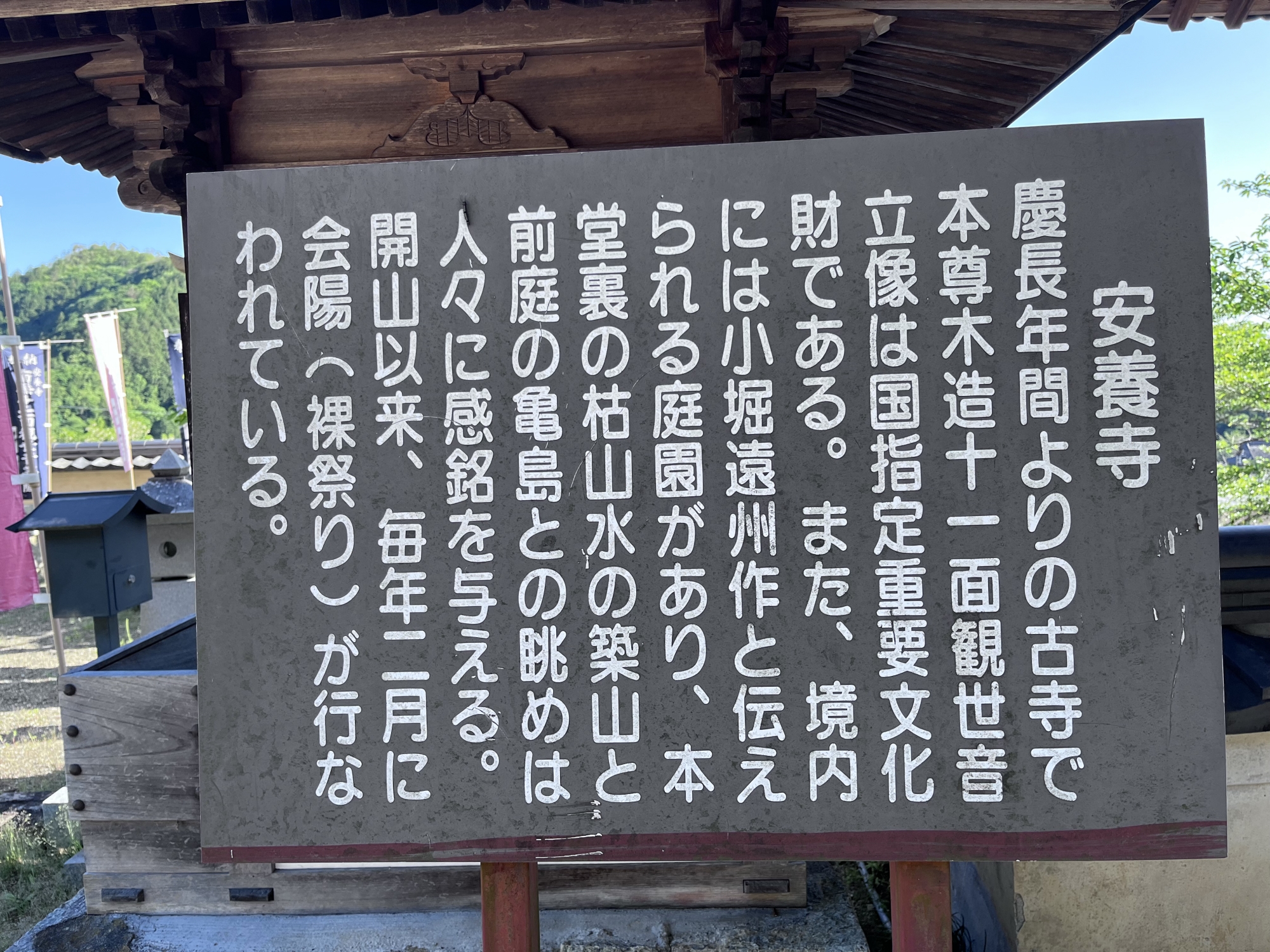 【また、安養寺には国の重要文化財に指定されている木像十一面観音立像があり、秘仏とされ33年毎にご開帳が行われることとなっています。】