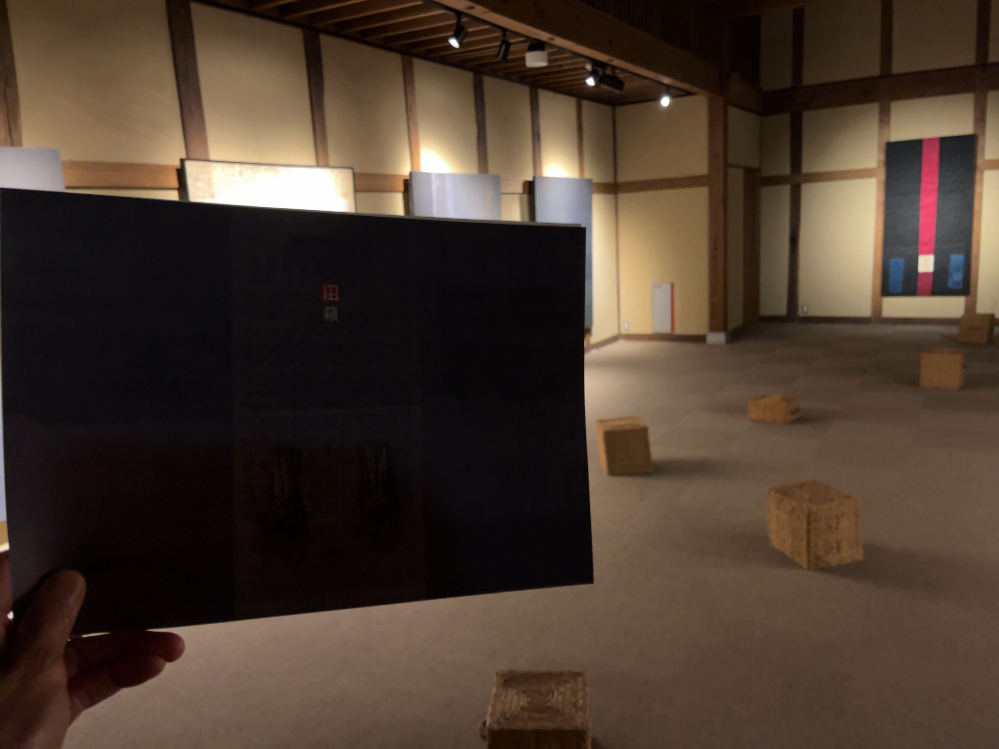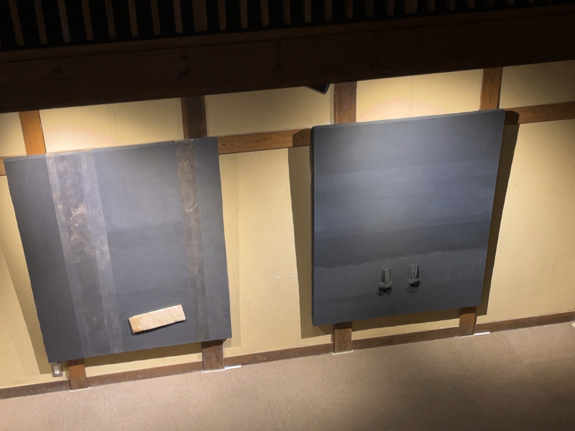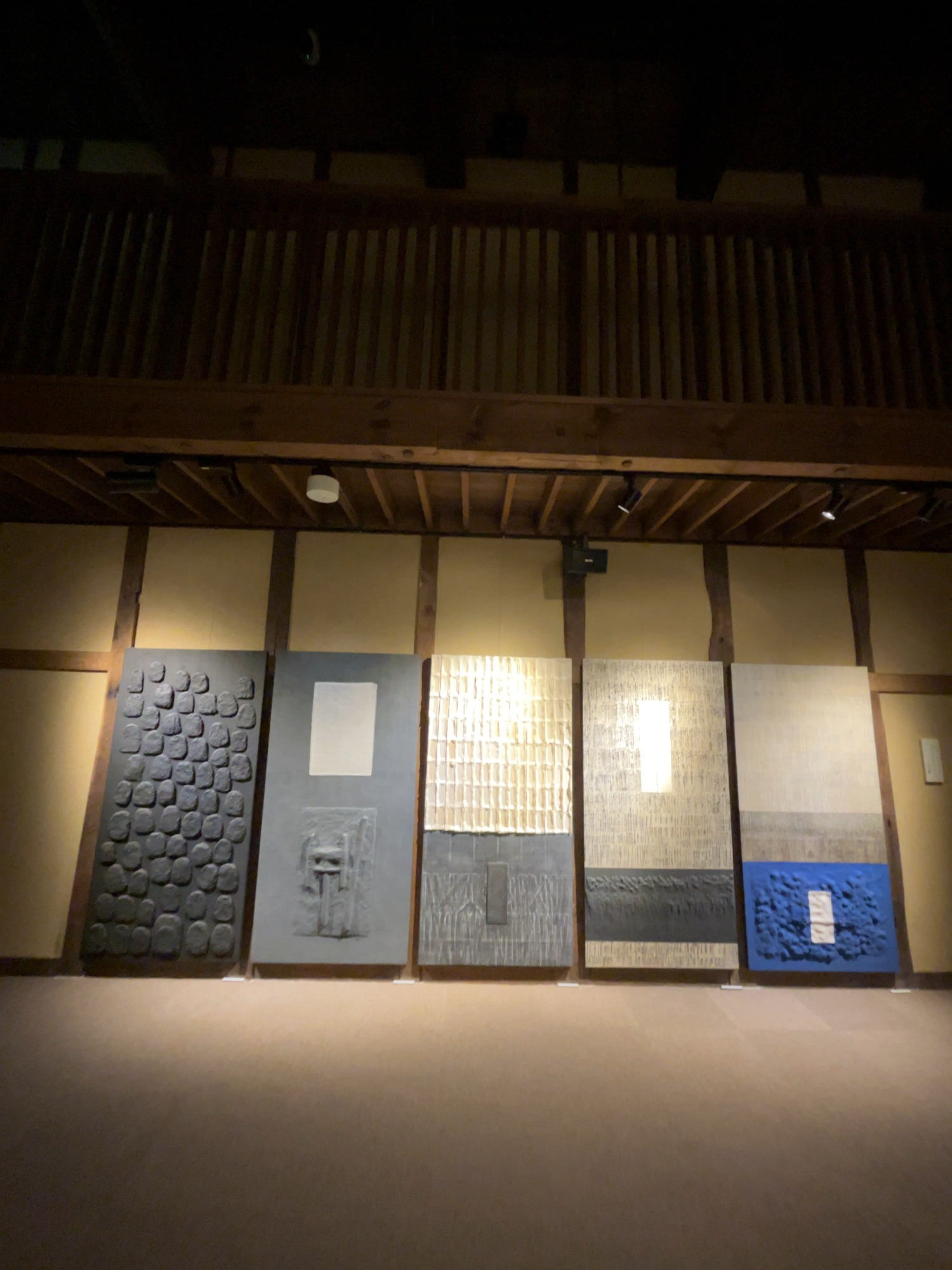 そして、1階でしっかり観ます。抽象でも、そこに農機具などを組み込むコラージュによって、農の重要性というか、地に繋がる作品になっています。