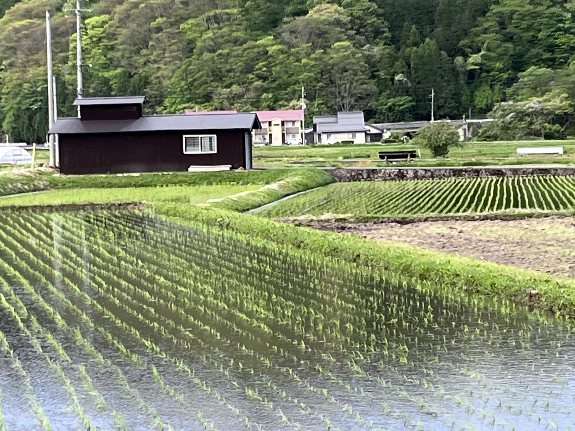 まだの処も・・・・そう、水が張ってない処もありますが・・もち米は早いらしいです。