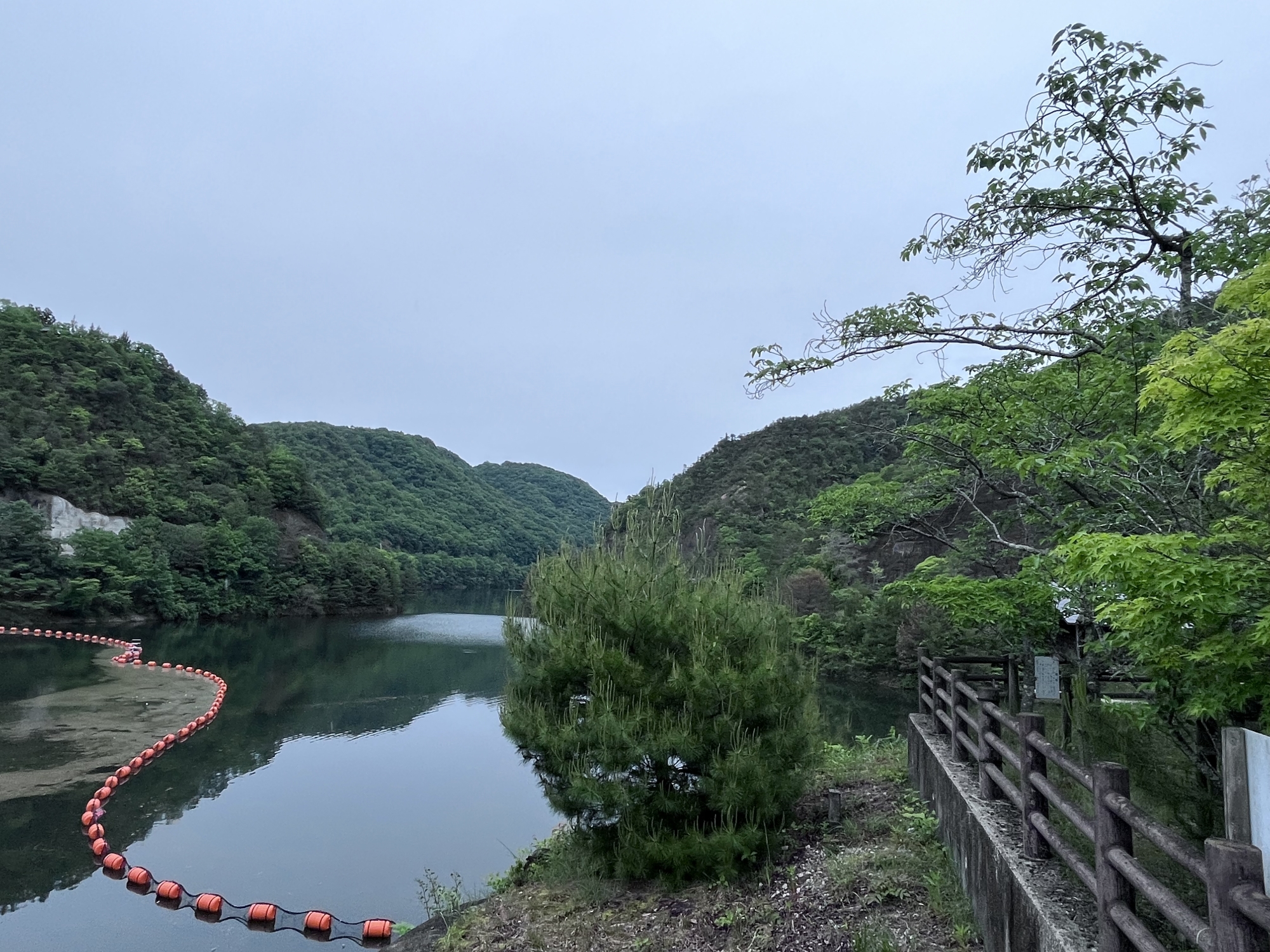 【高梁川合同堰で取水した高梁川の水がとどかないため、貧弱な水源である落合川(高梁川水系槙谷川左支川)やため池に頼っている地域において、不足しがちな農業用水を確保するとともに、ダム下流の落合川、槙谷川沿いの農地を洪水被害から守るために岡山県農林水産部において建設され、平成元年度に完成したダムです。】