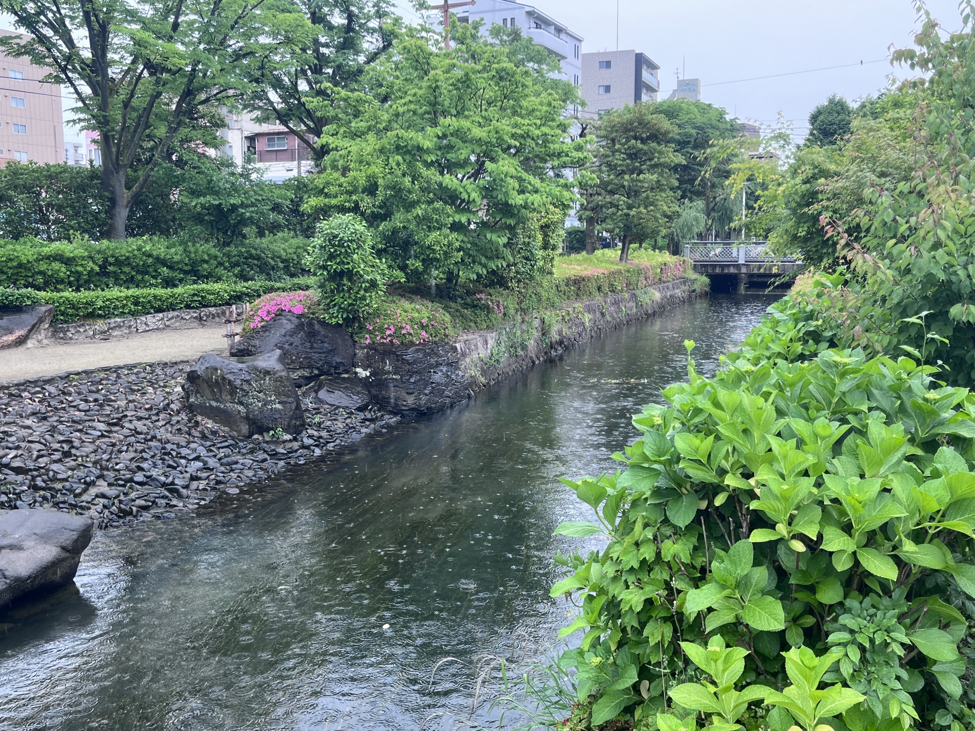 さて・・・雨の中ですが、岡山へ・・。いつもながら、。枝川緑道公園です。