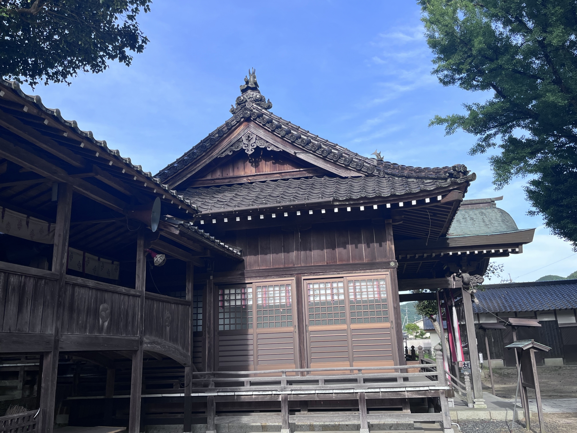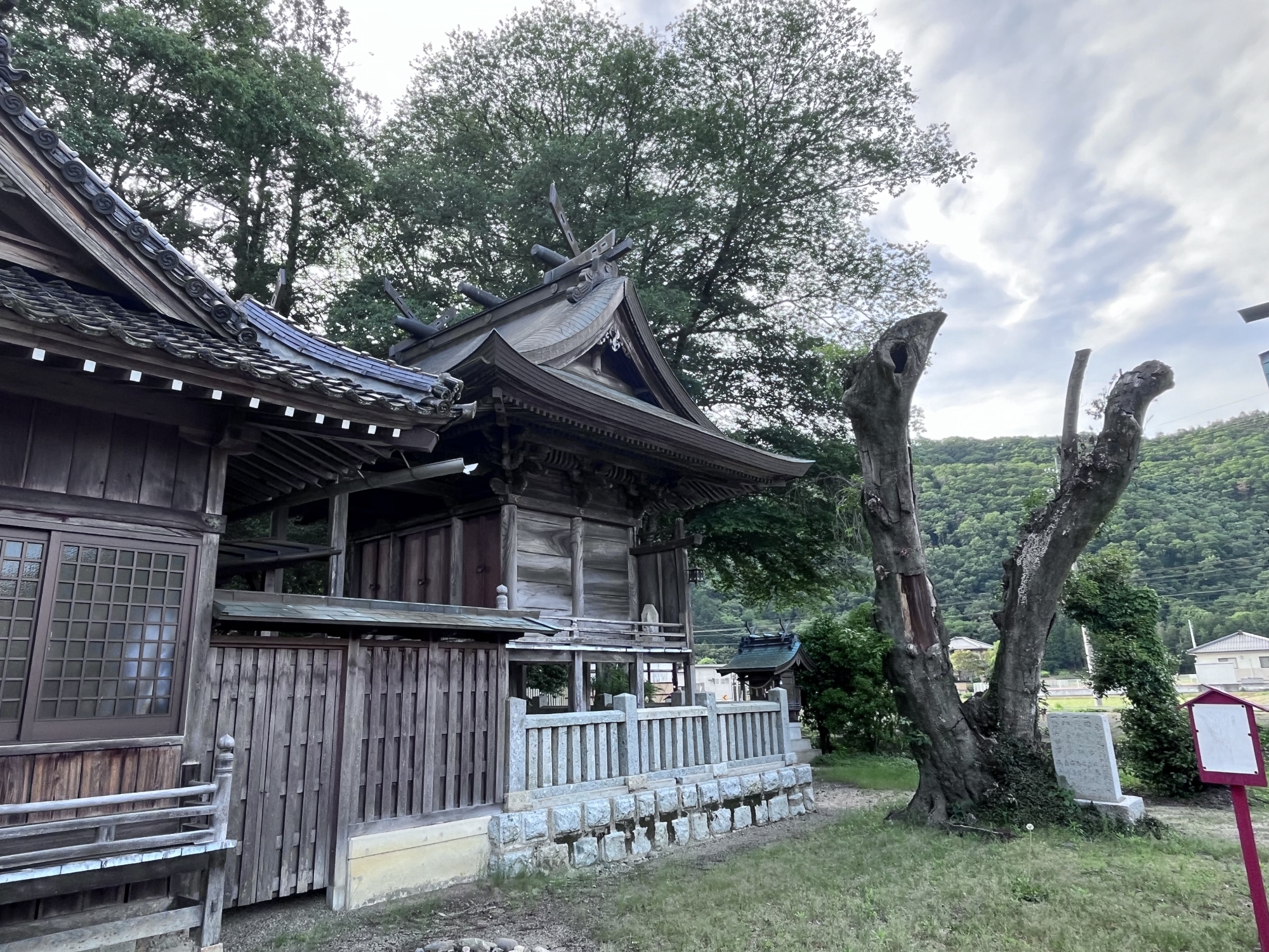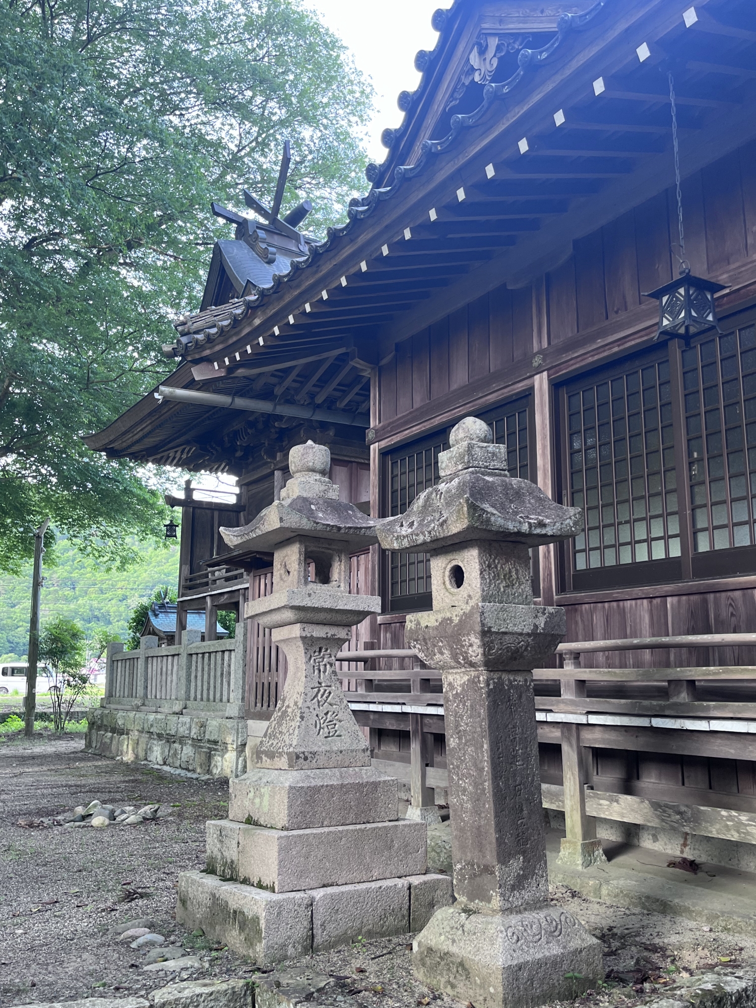 【吉野川右岸沿いの朽木くつぎ集落に鎮座。祭神は天照大神、相殿として天児屋根神・天穂日神、旧郷社。】