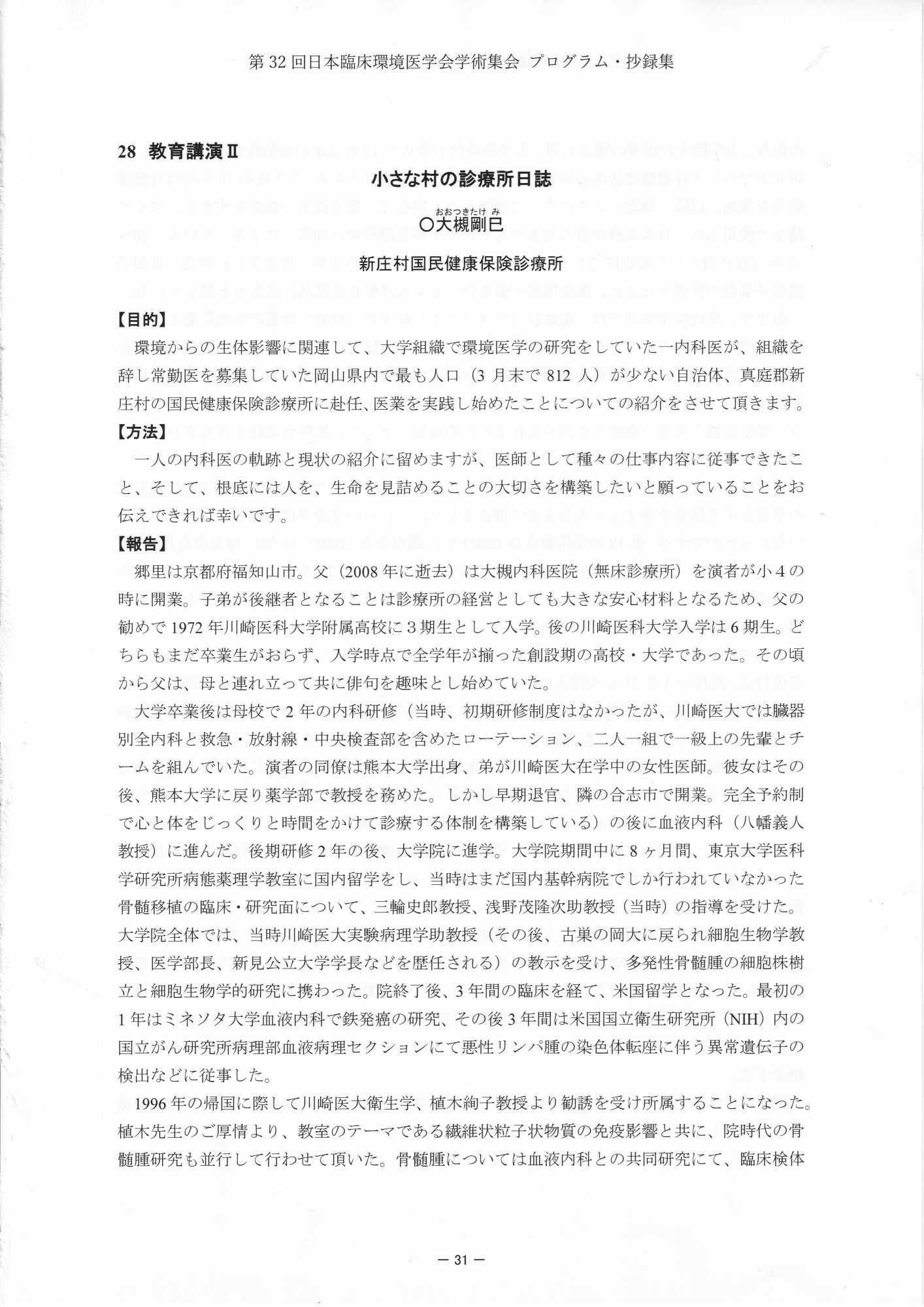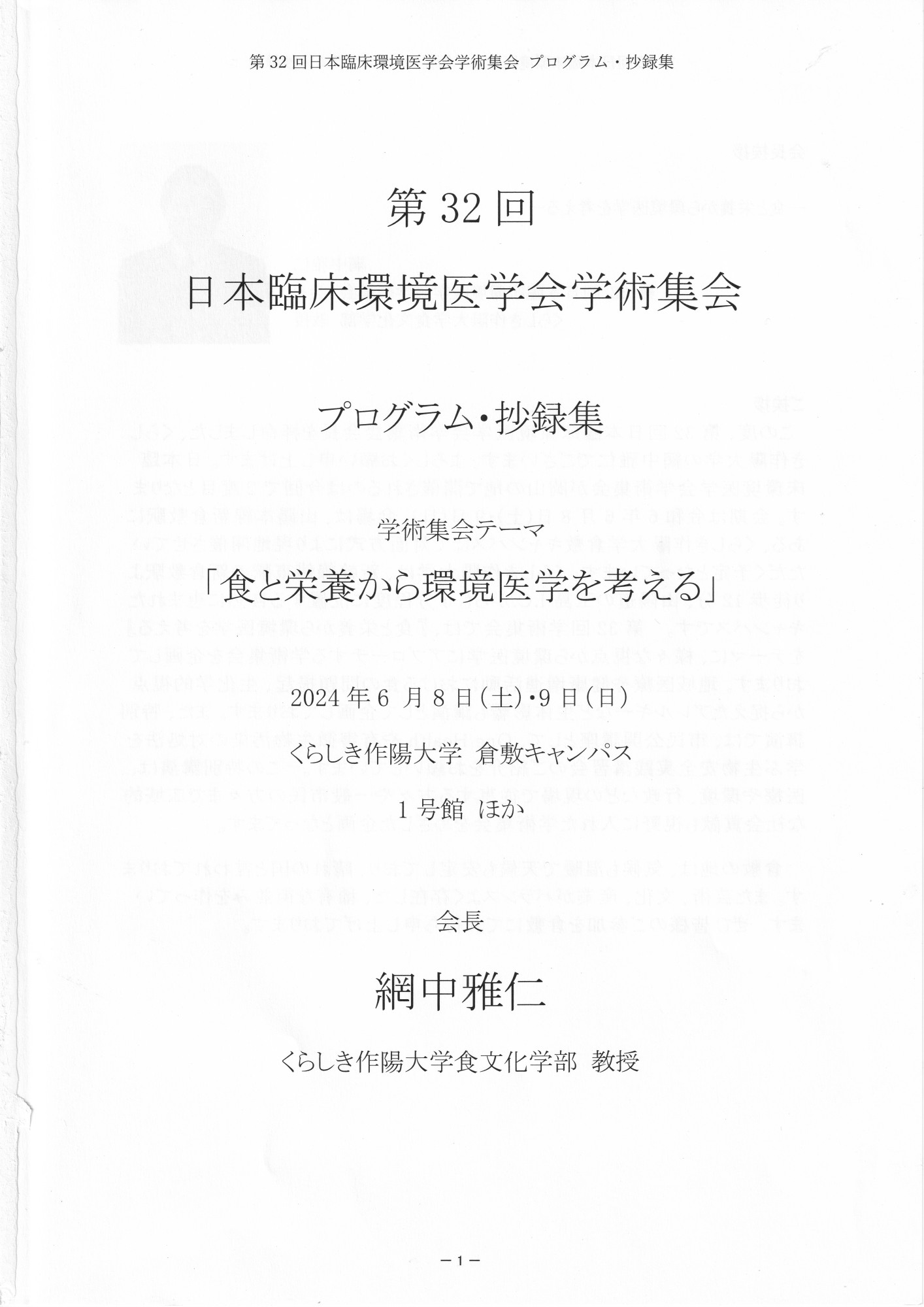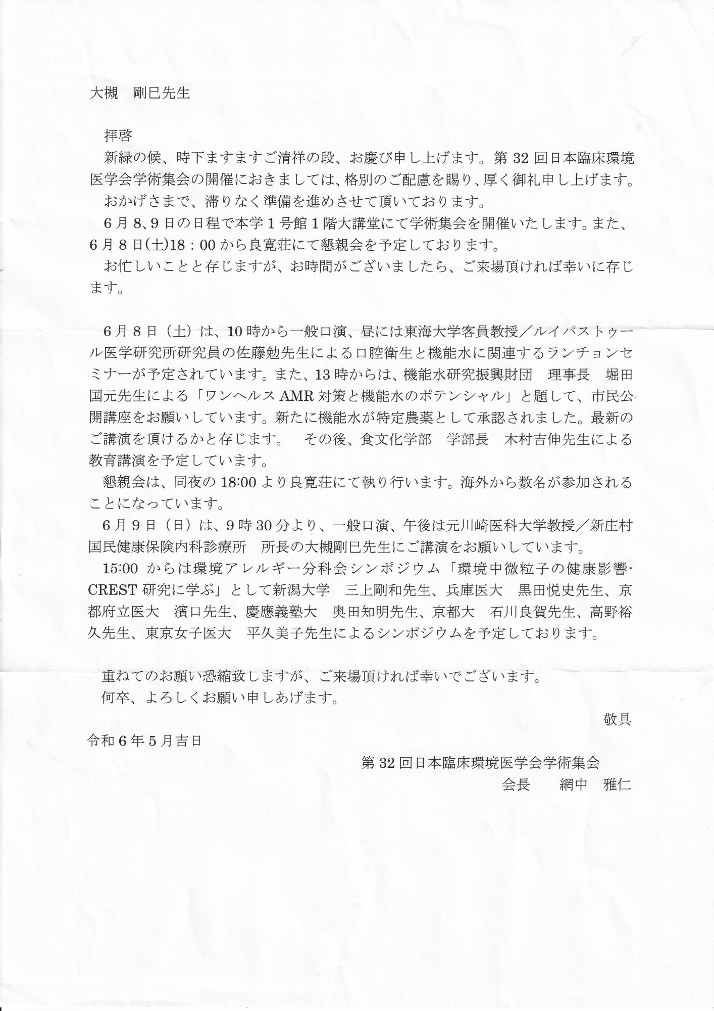 網中先生が学術集会会長を務められている第32回日本臨床環境医学会……ボクは二日目(今日)の9時から教育講演2を暖冬です。