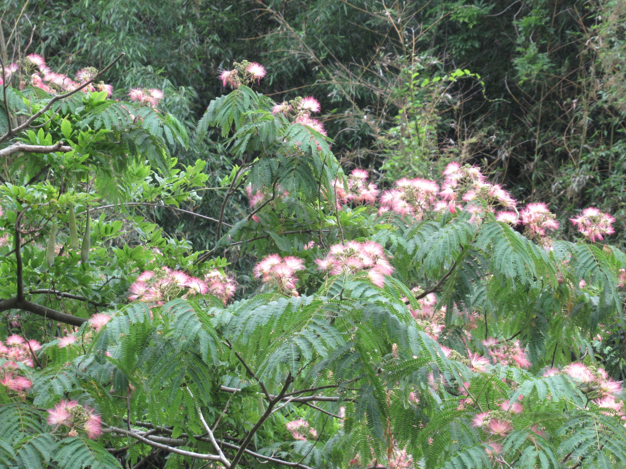 降りるあちこちで合歓が満開……53号線沿いには、巨木もいくつか。