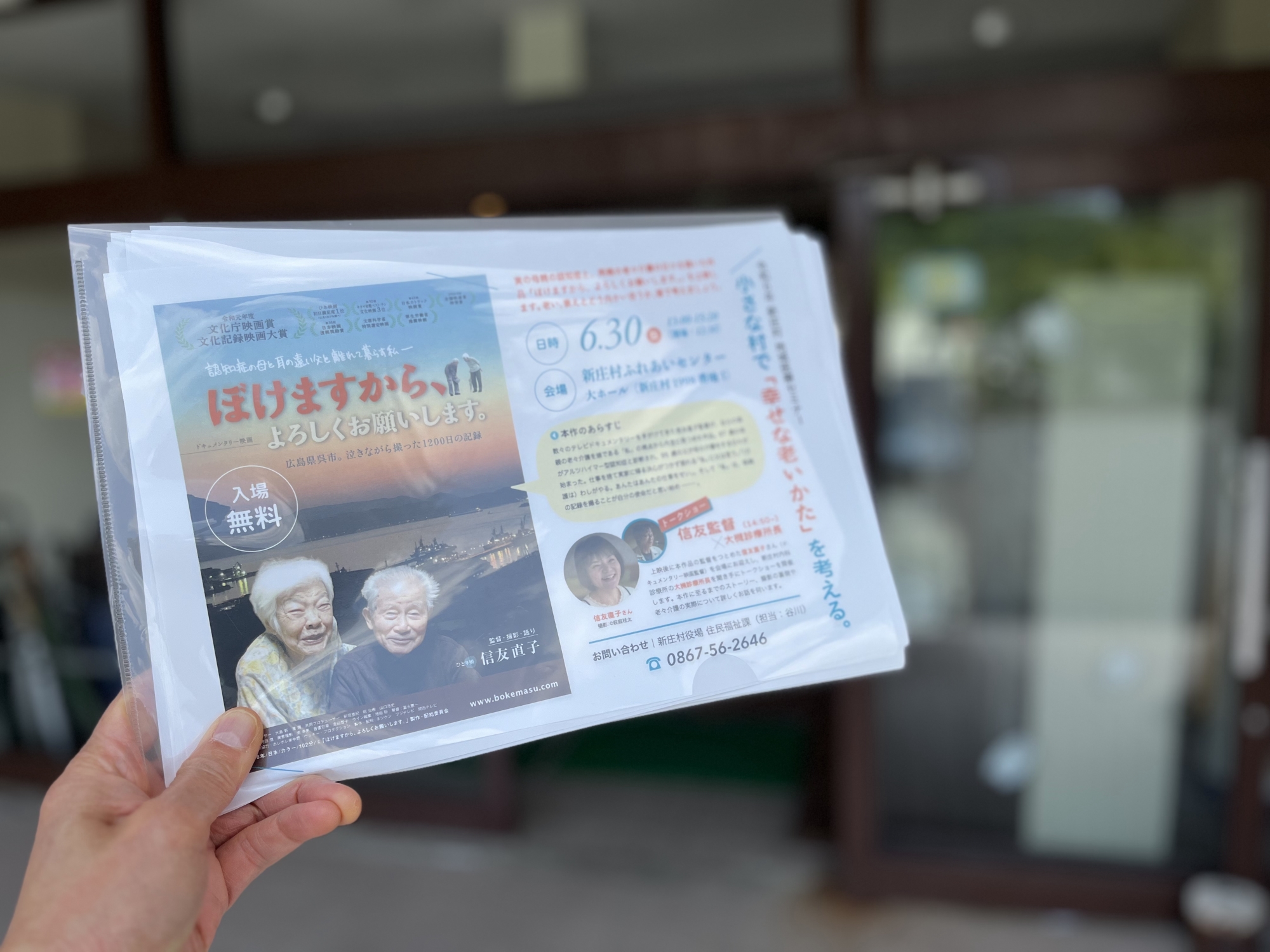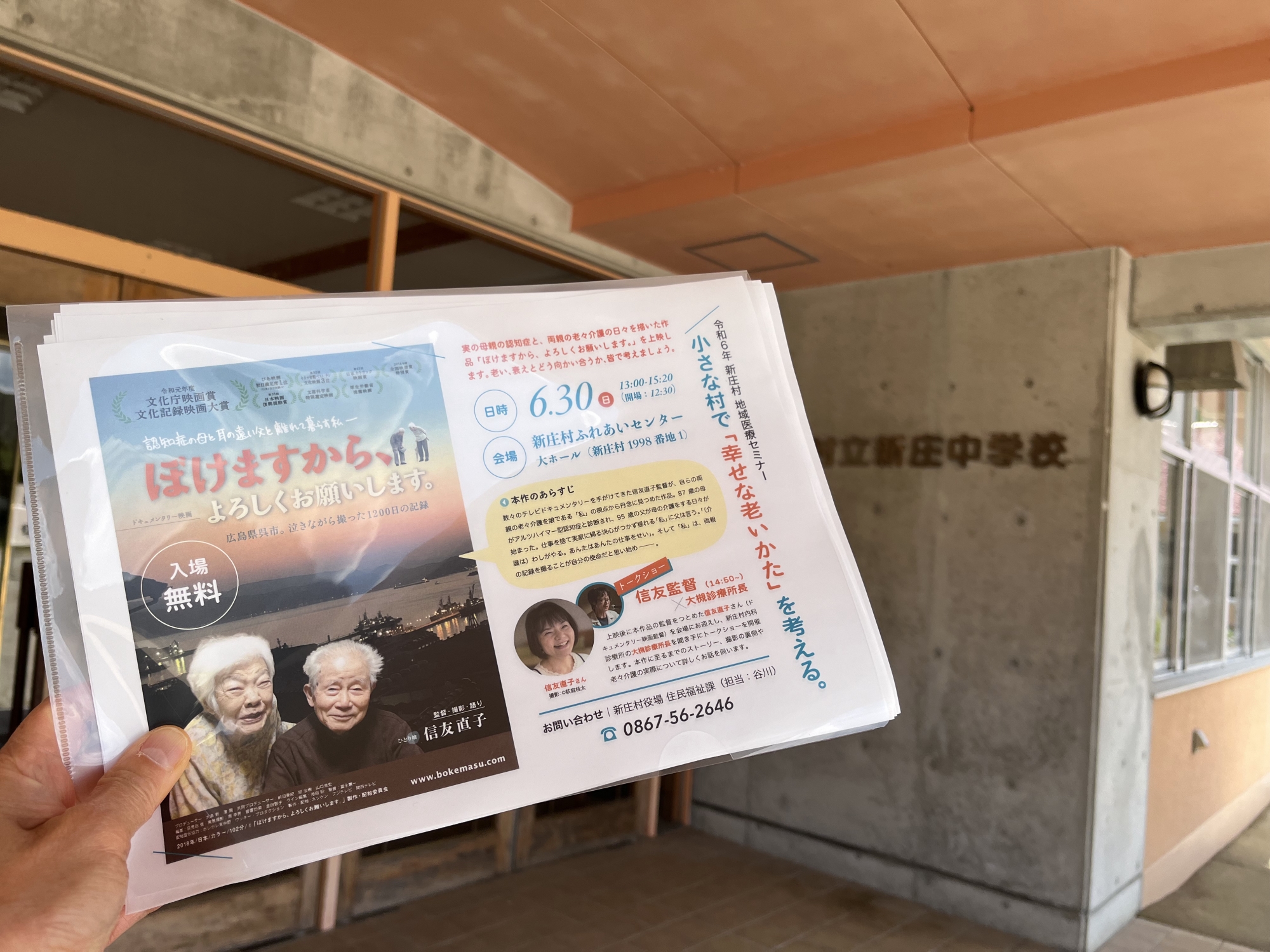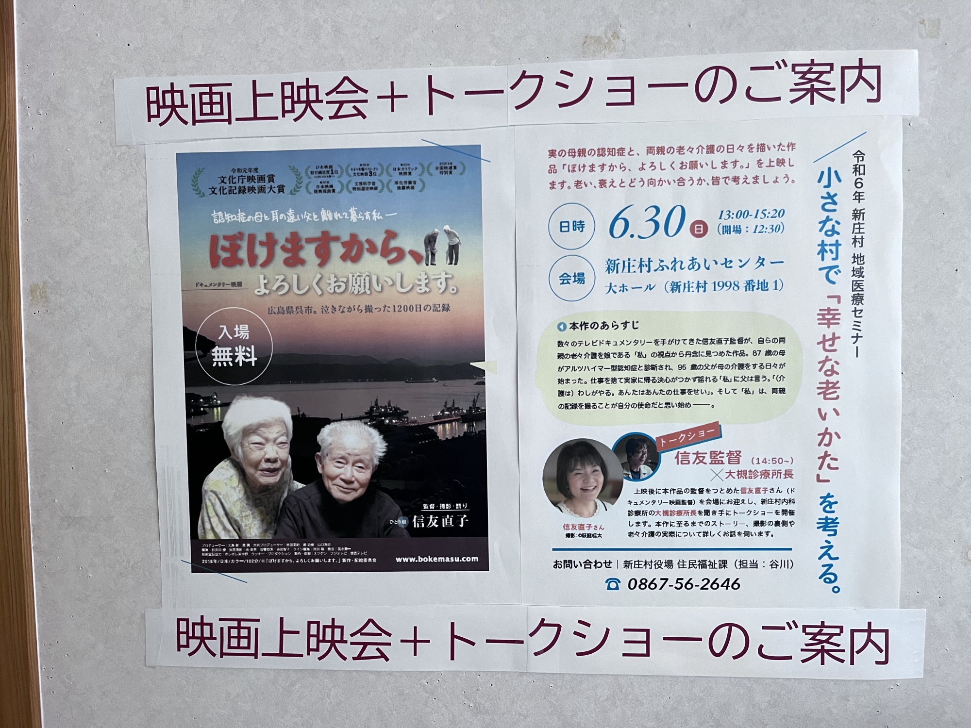 6/30:新庄村ふれあいホールで「ぼけますから、よろしくお願いします」上映会+信友監督と大槻のトークショー