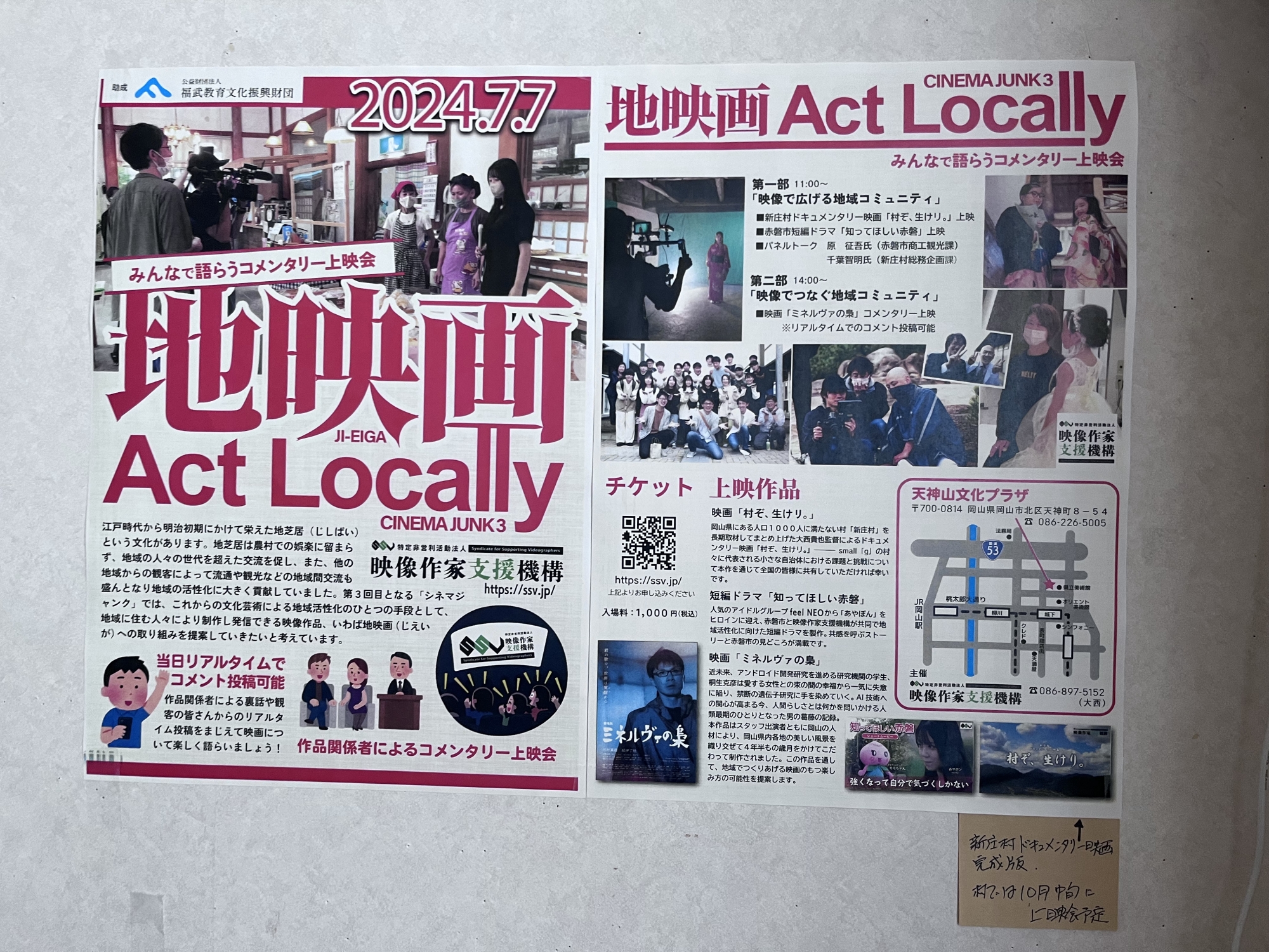 7/7:岡山市天神山文化プラザでNPO映像作家支援機構による「シネマジャンク3」:「村ぞ、生けり」、「ミネルヴァの梟」上映