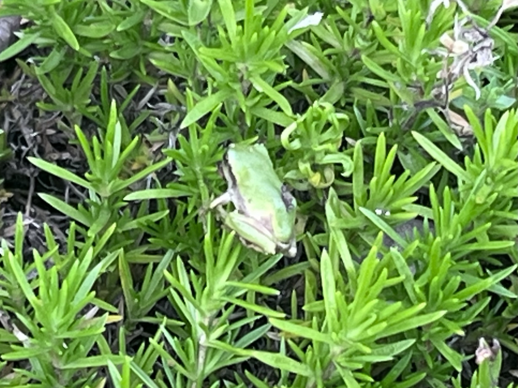 夕方~花壇に小さなカエル君。