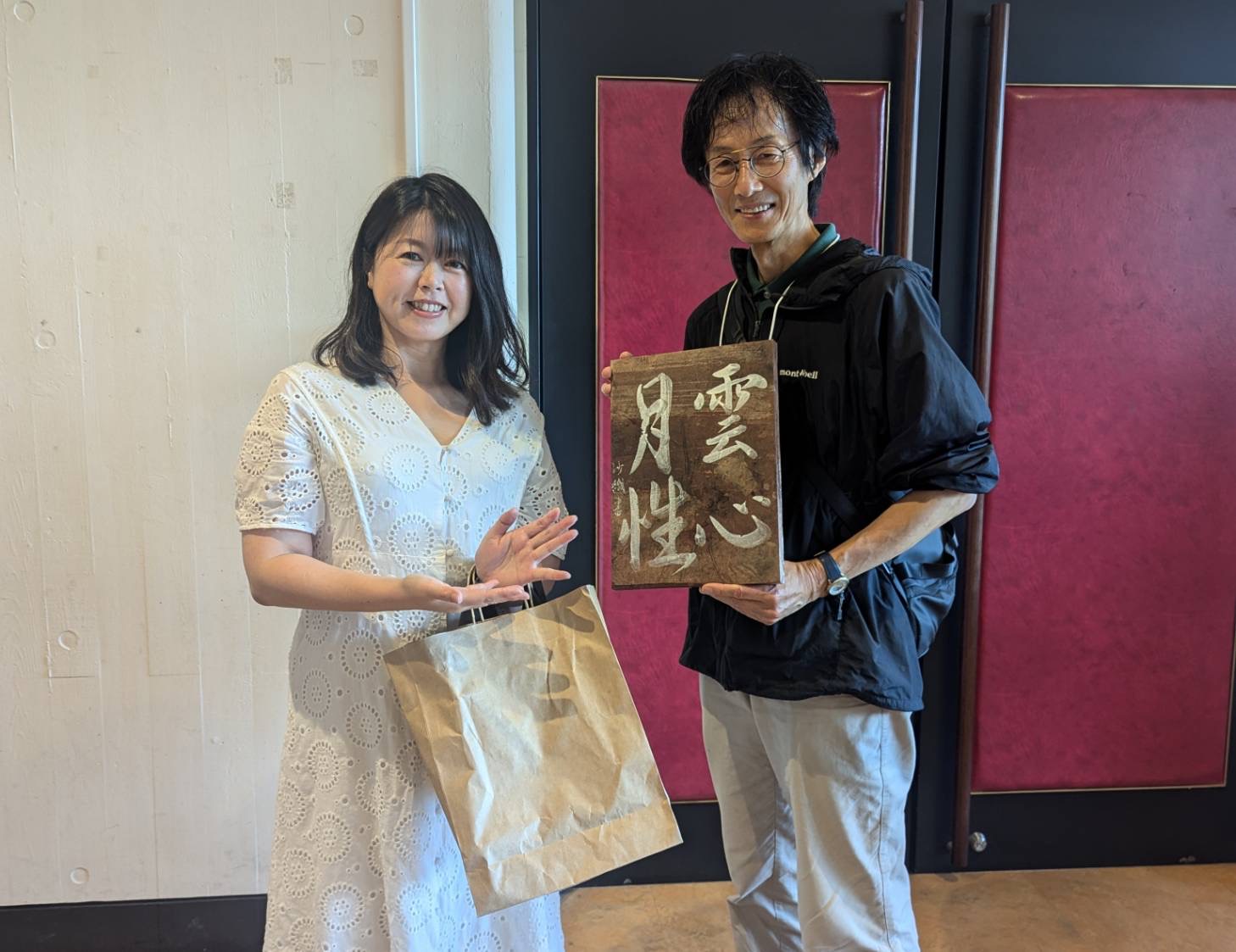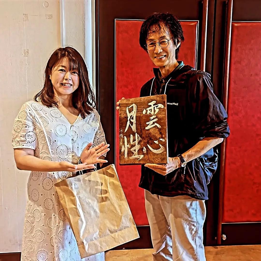 書家の田辺沙織さん、天神山文化プラザに来てくださいました。大槻が、ネットラジオの番組名、キャムネットのマガジンのコラムのタイトル、最近は個人webの名前に、加えて、ピアノサポートでユニットに加わる時の「UG」というのも、この読みのUn-shin