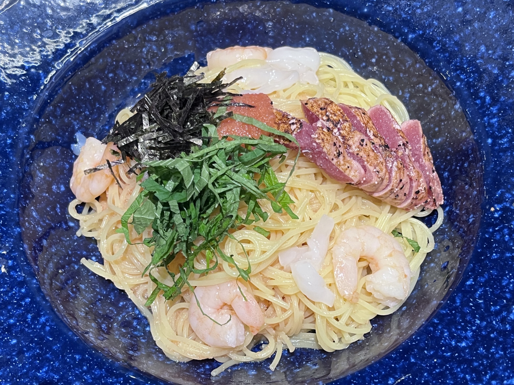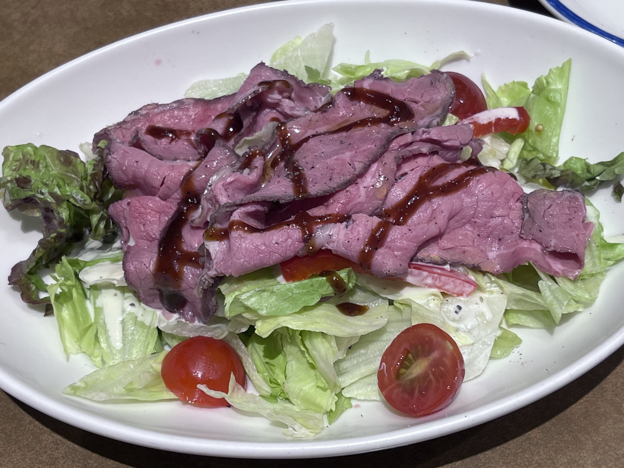 で、冷製パスタご、でも、本当に美味しい😋ローストビーフサラダも。ボクは「“冷製カッペリーニ"炙り明太子とヤリイカ」、wifeさんは「“冷製カッペリーニ”うにと贅沢海の幸のクリームソース」‥‥さて、村まで帰らないと。