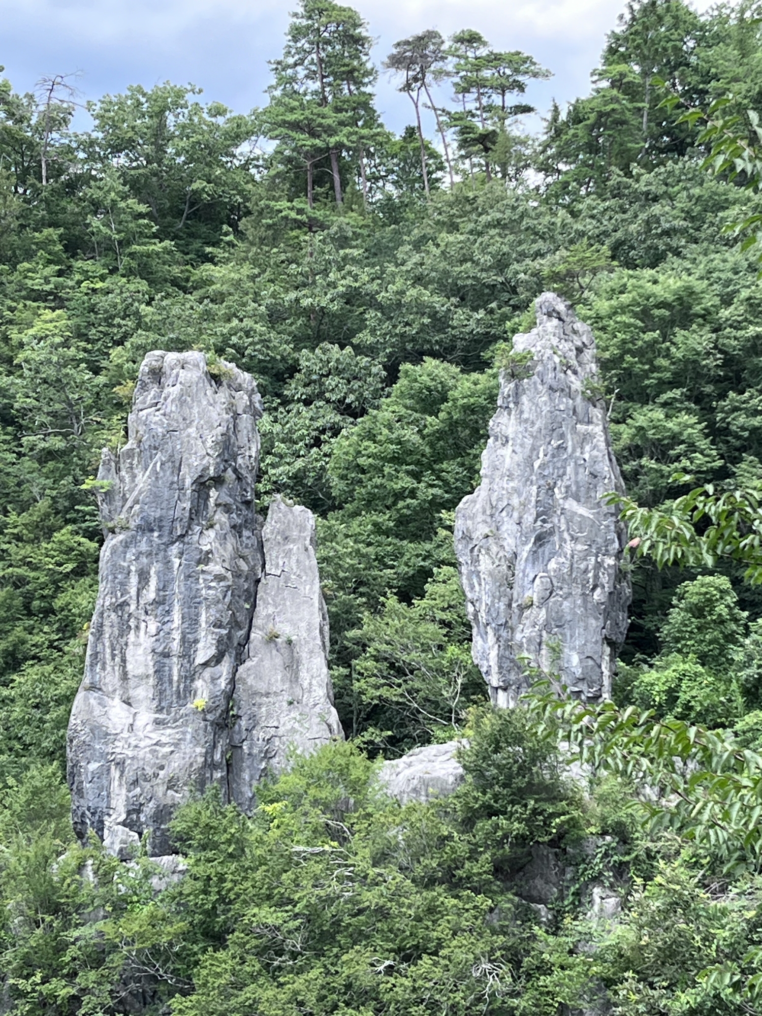 【夫婦岩は、標高400mの石灰岩の台地上にそびえた、自然が生み出した華麗な2つの大塊です。】