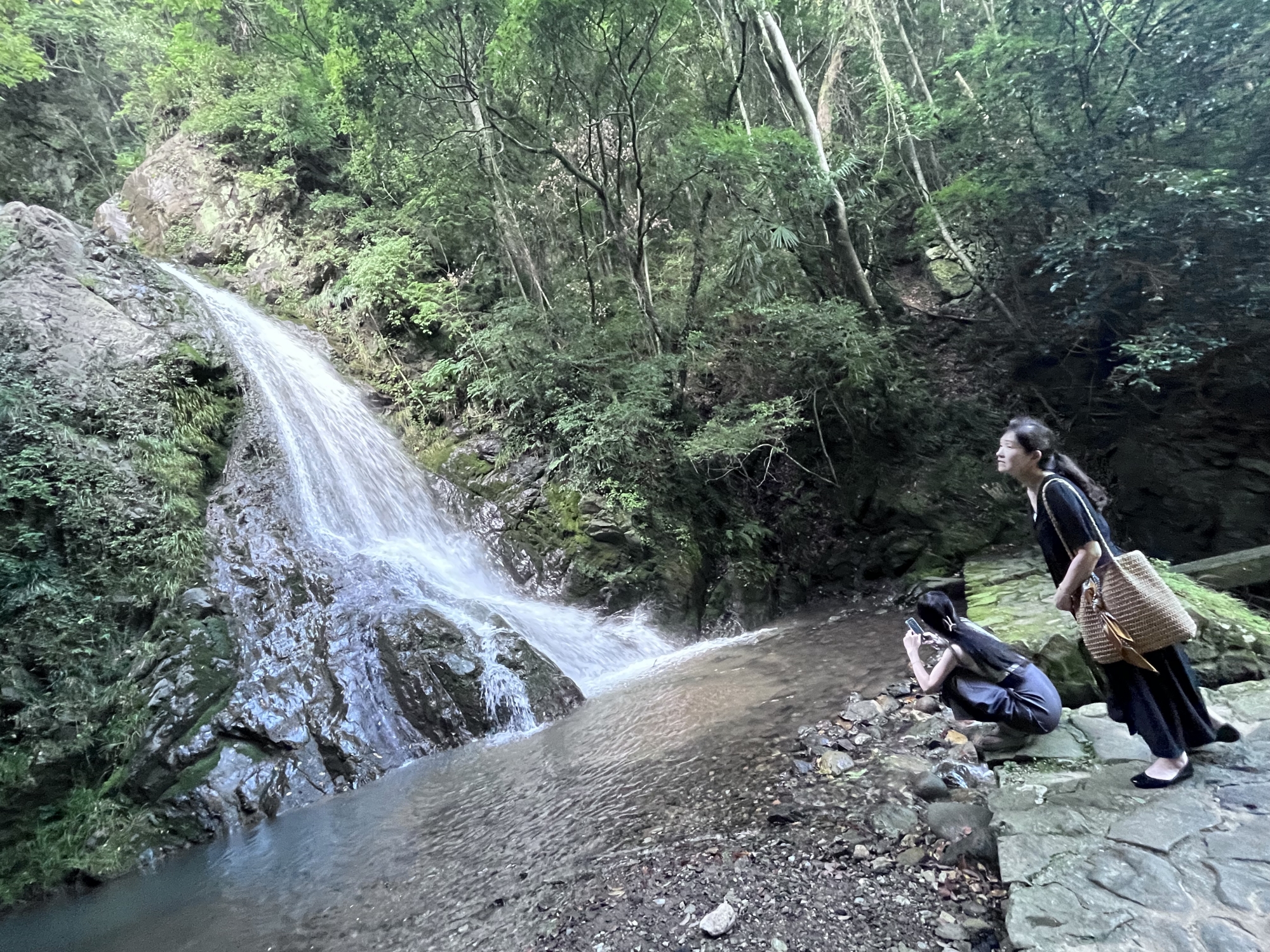 カルスト台地のしみ込んだ伏流水が湧水した滝で、水量が変わらないとのこと。