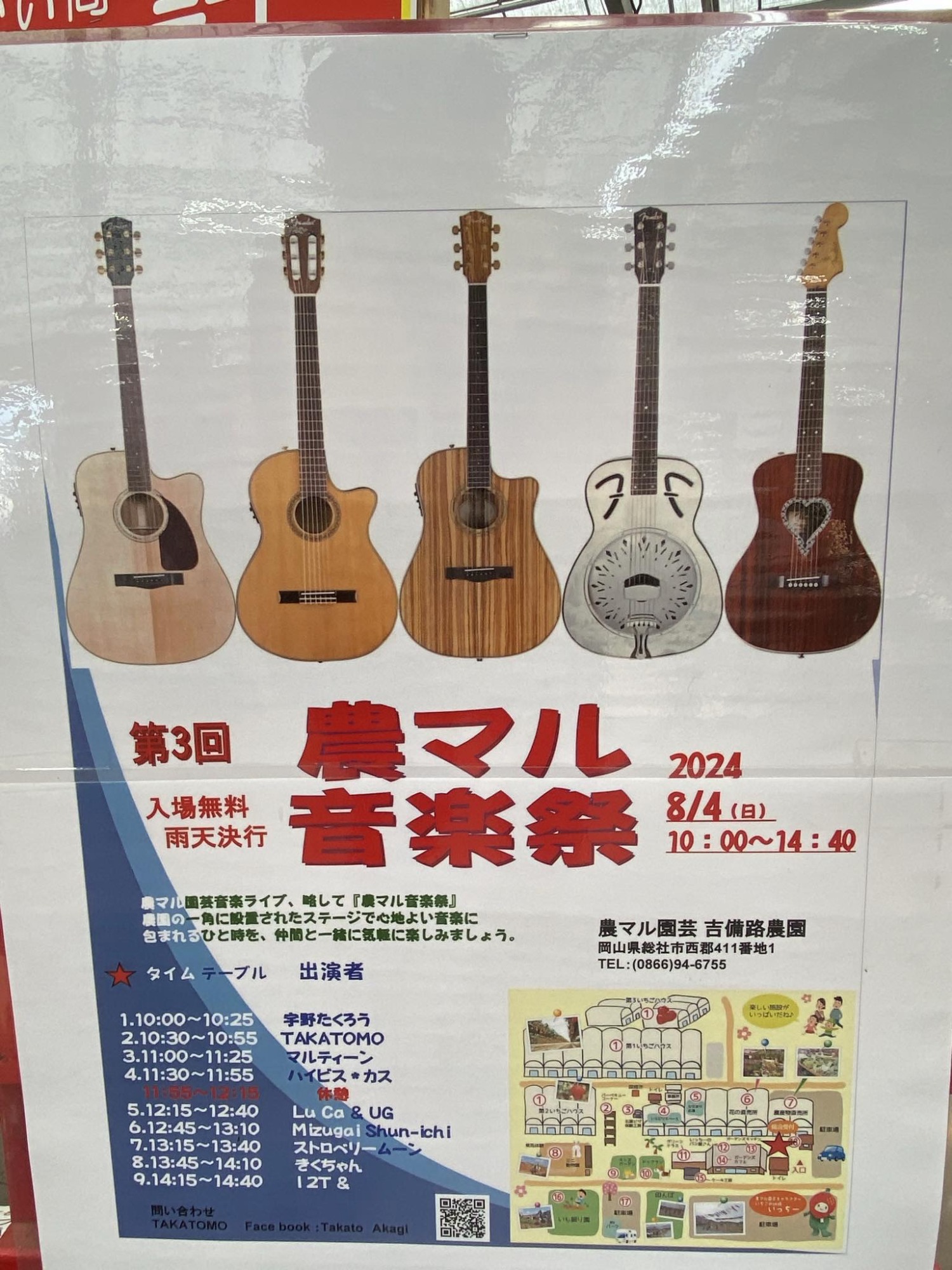 今日は、総社の農マル園芸で、TAKATOMOさん企画の、農マル音楽祭!!