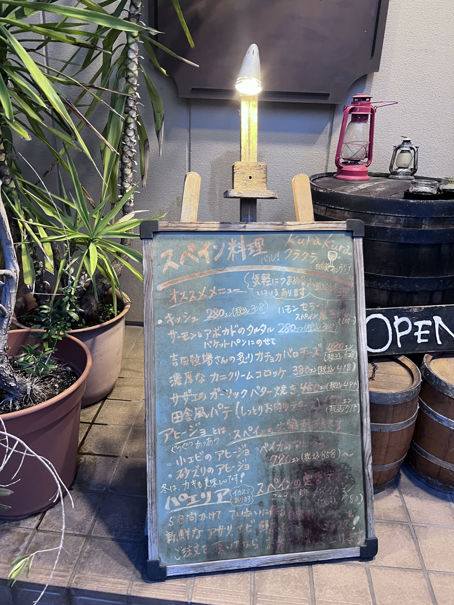 で、dinnerは、岡山駅東口北東のスペイン料理「Kura Kura」さんです。