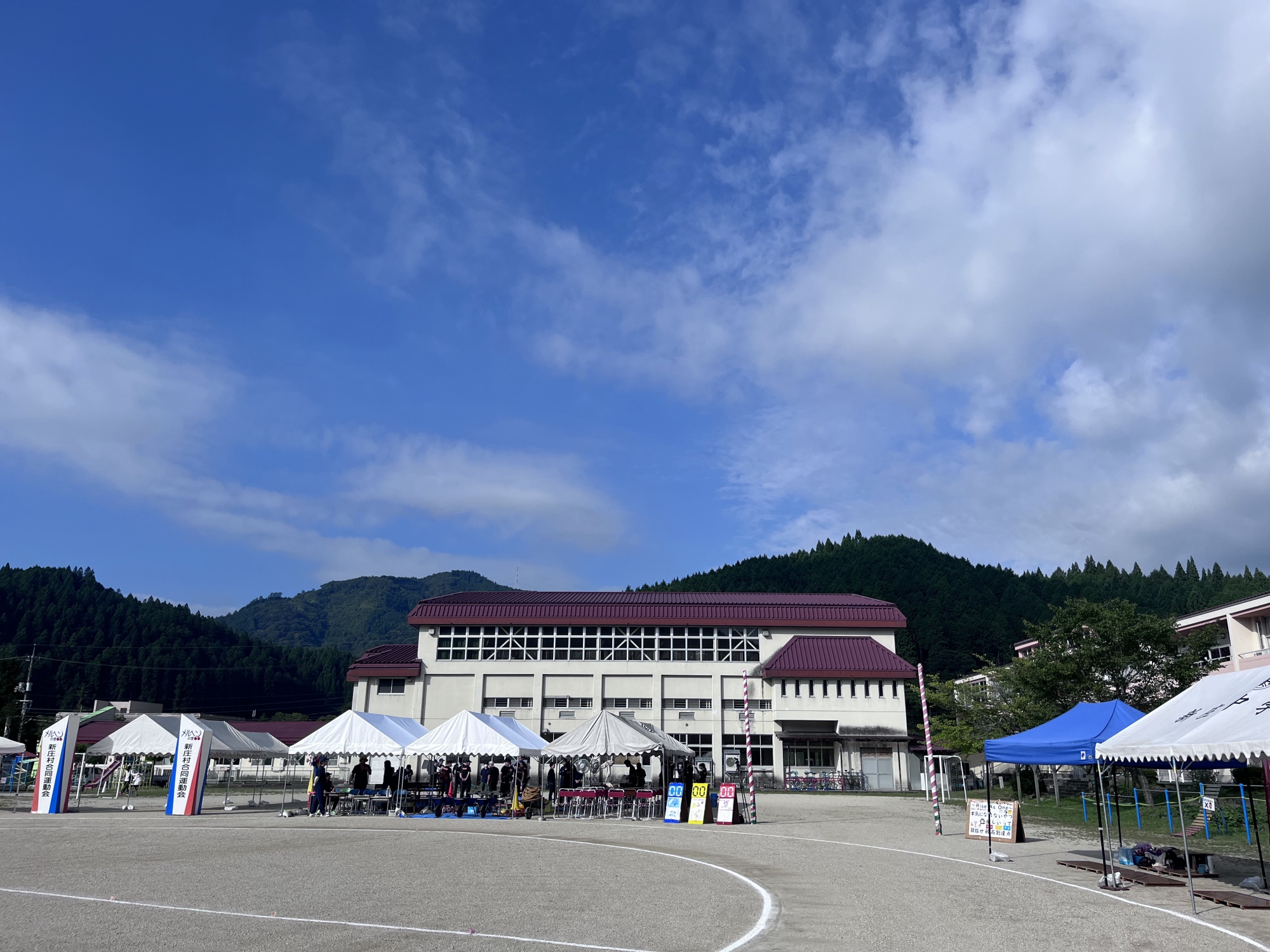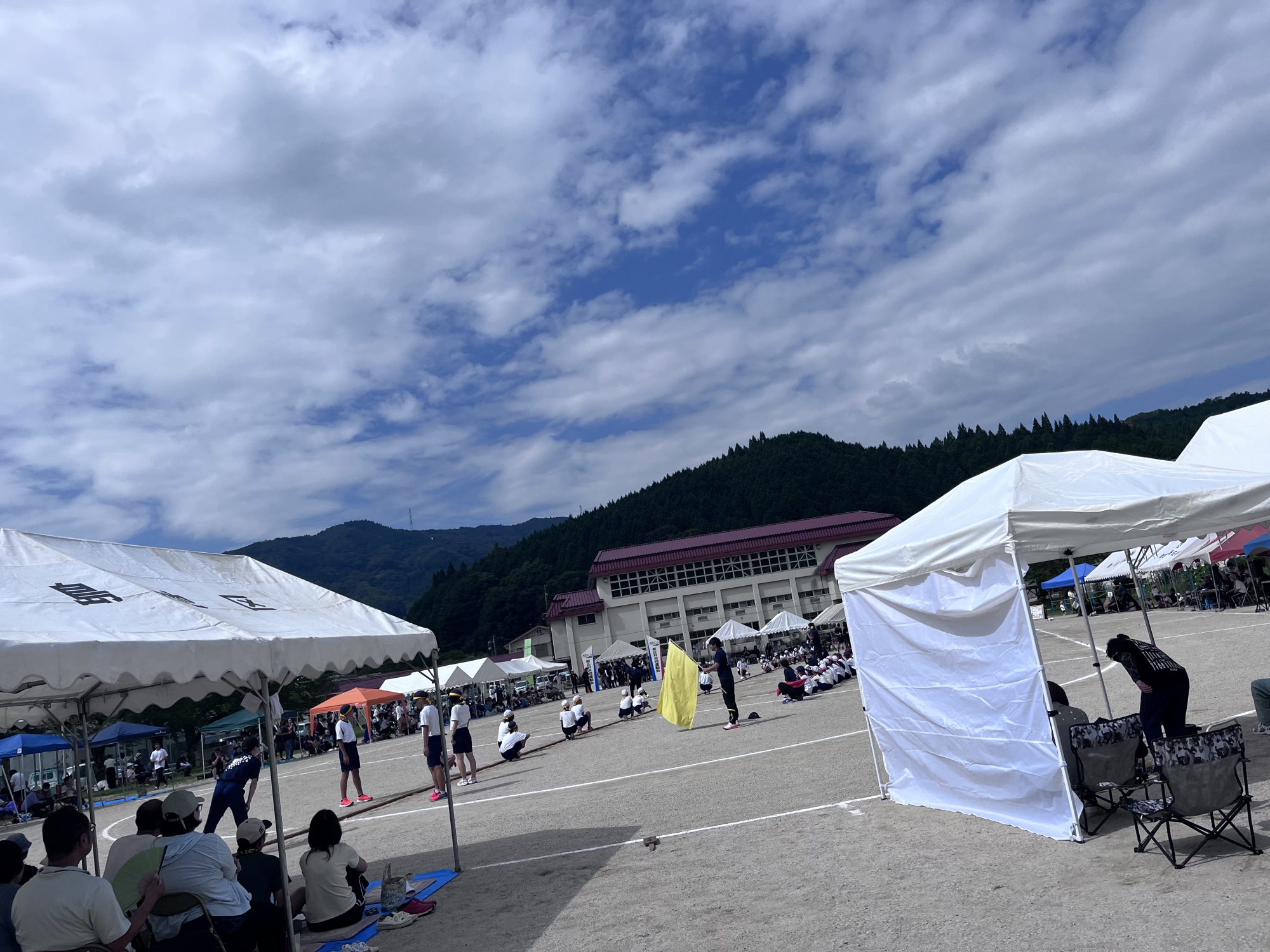 午前は、村の合同運動会。園児、小中一貫校の1〜9年生、