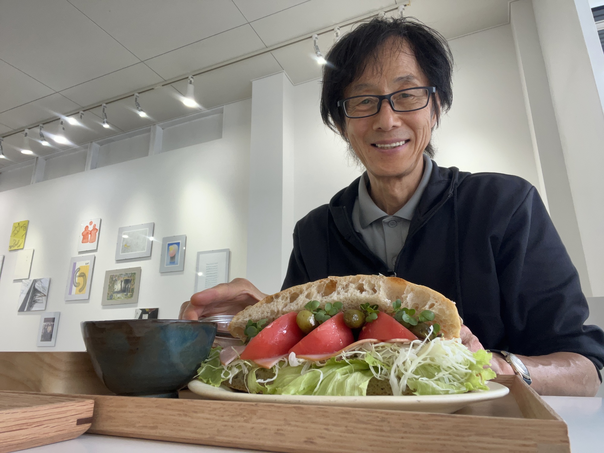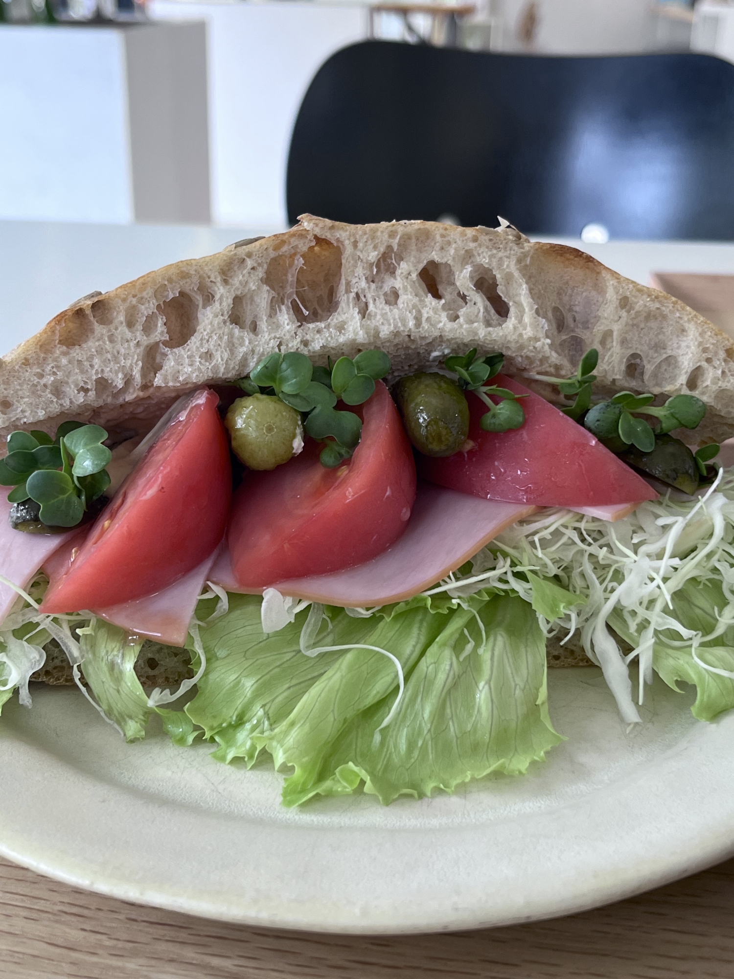 いつもと違うチーズと野菜のサンドイッチ。サワドゥパンで。
