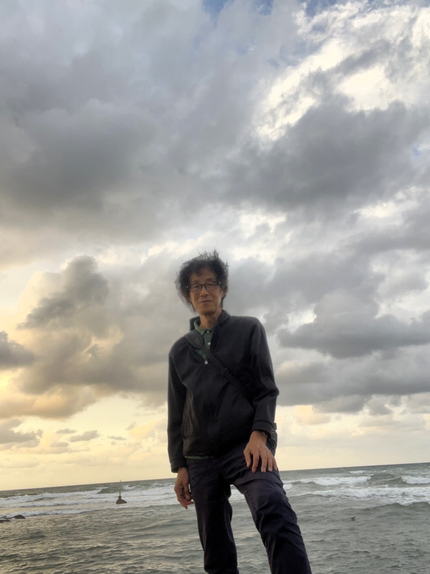 さて、降りて行こう、マンホールも波しぐれ三度笠。