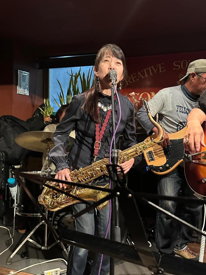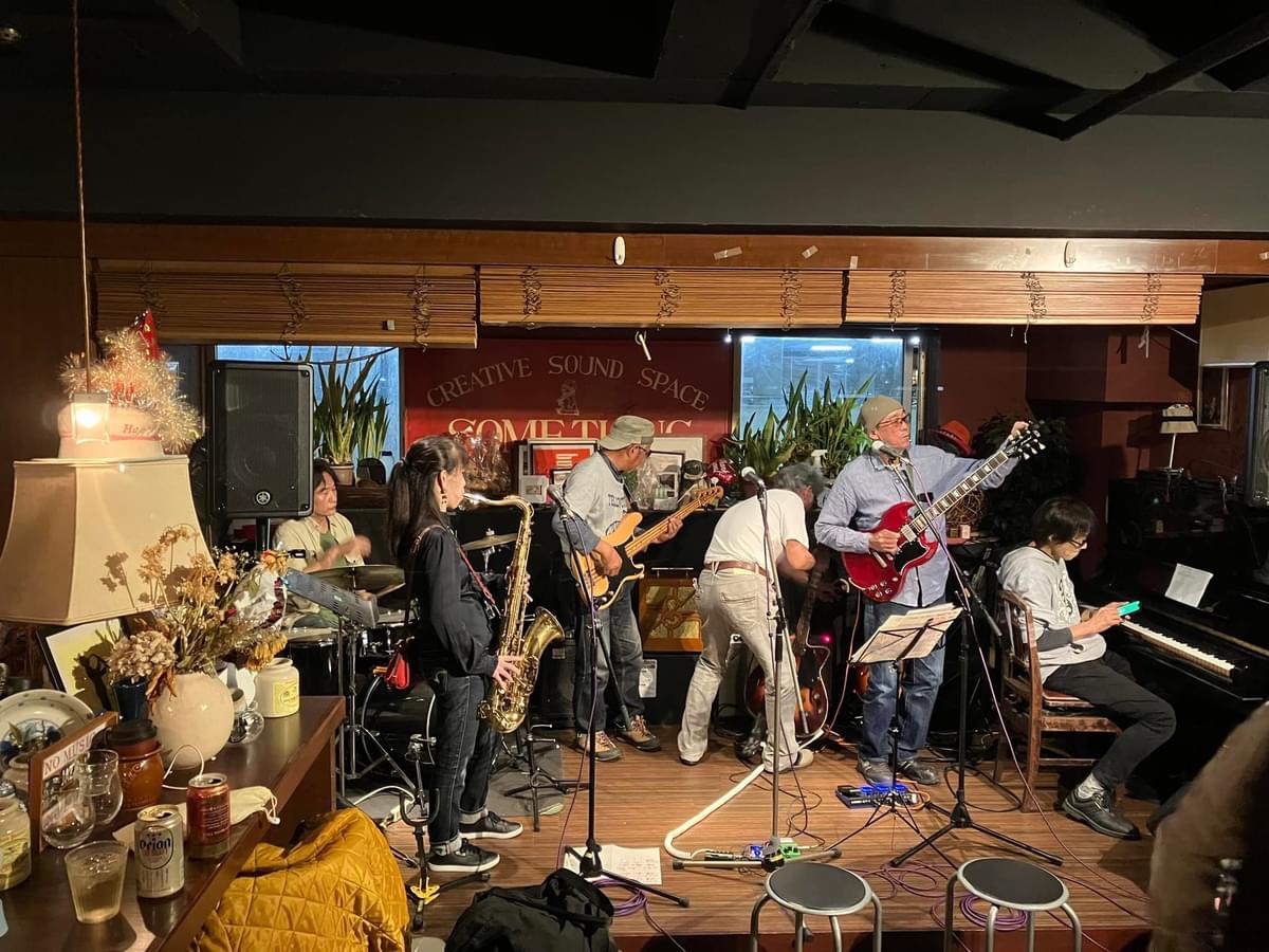 丁度、リハでした。良いグルーブです。弾ける感じ、そして菅が二本あるってのは、サイコーですよね。