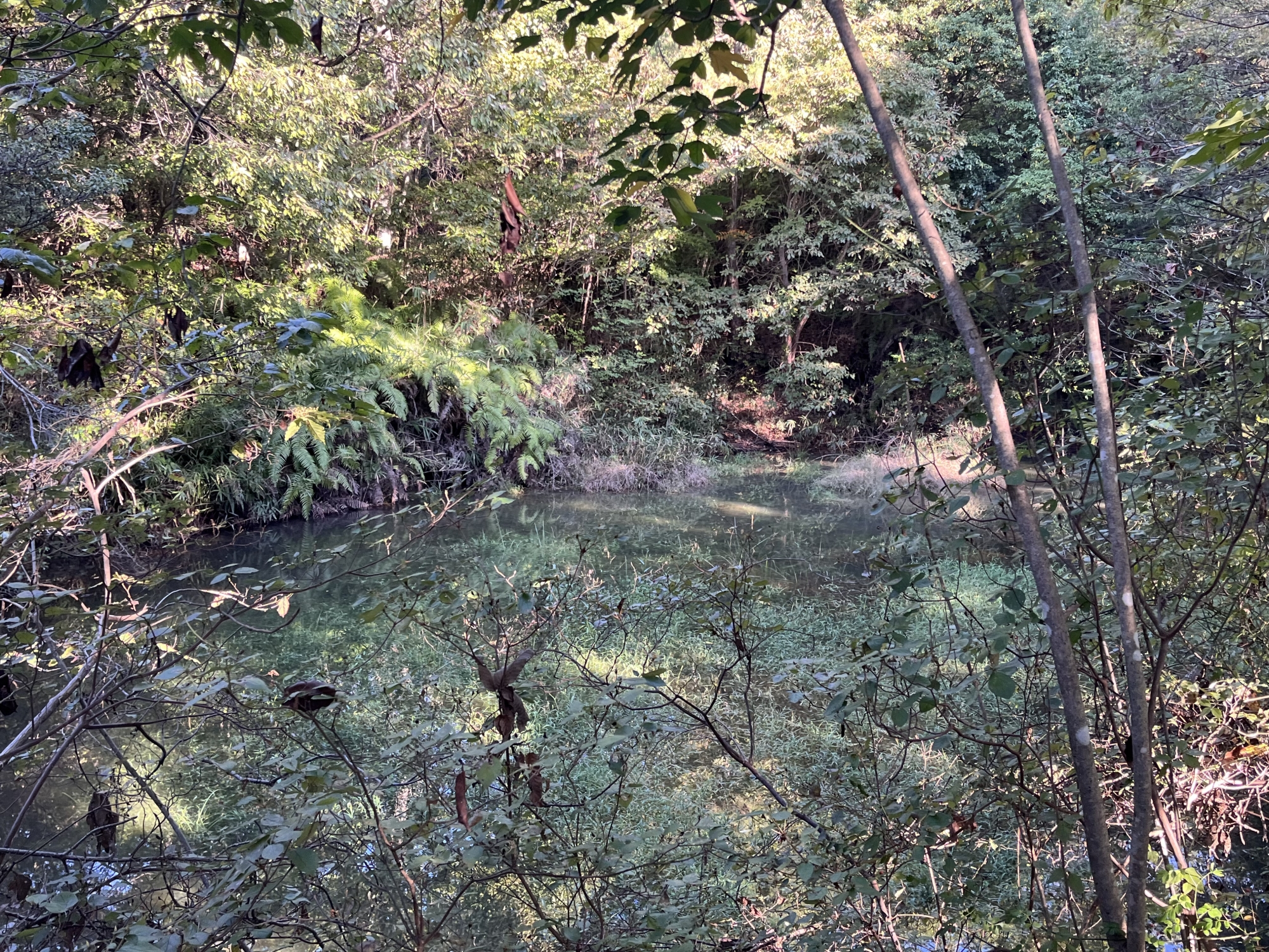 さて、この池の所から、近道=急な坂道の石段を登って行きましょう。