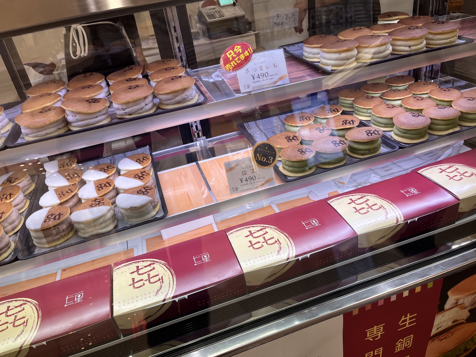 そして、お土産で、イオン日吉津に京都の独創菓子のお店の出店が出てまして、これは七星さんの生ドラ焼き。おいもと抹茶とチョコホワイト。旨い。