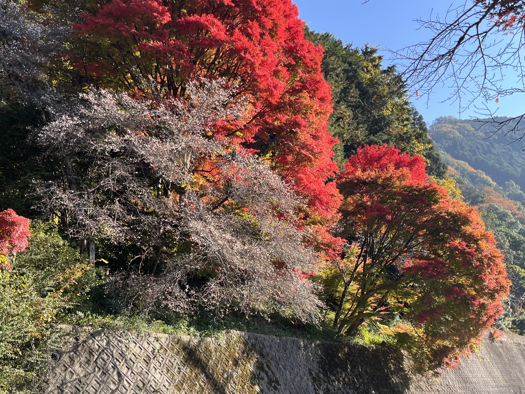 真庭市神代の四季桜……と、紅葉と。四季桜が散り始めていますけれど。