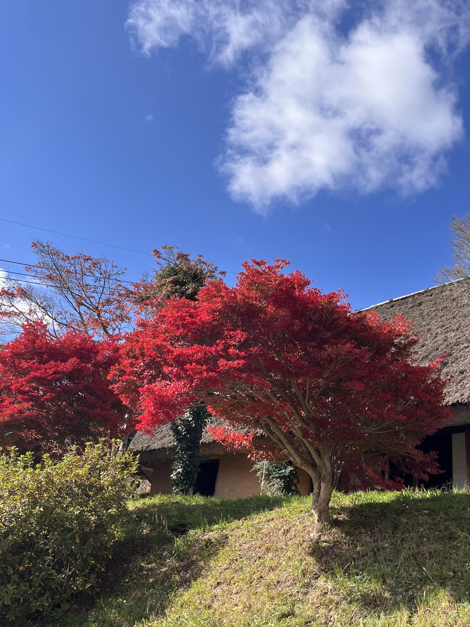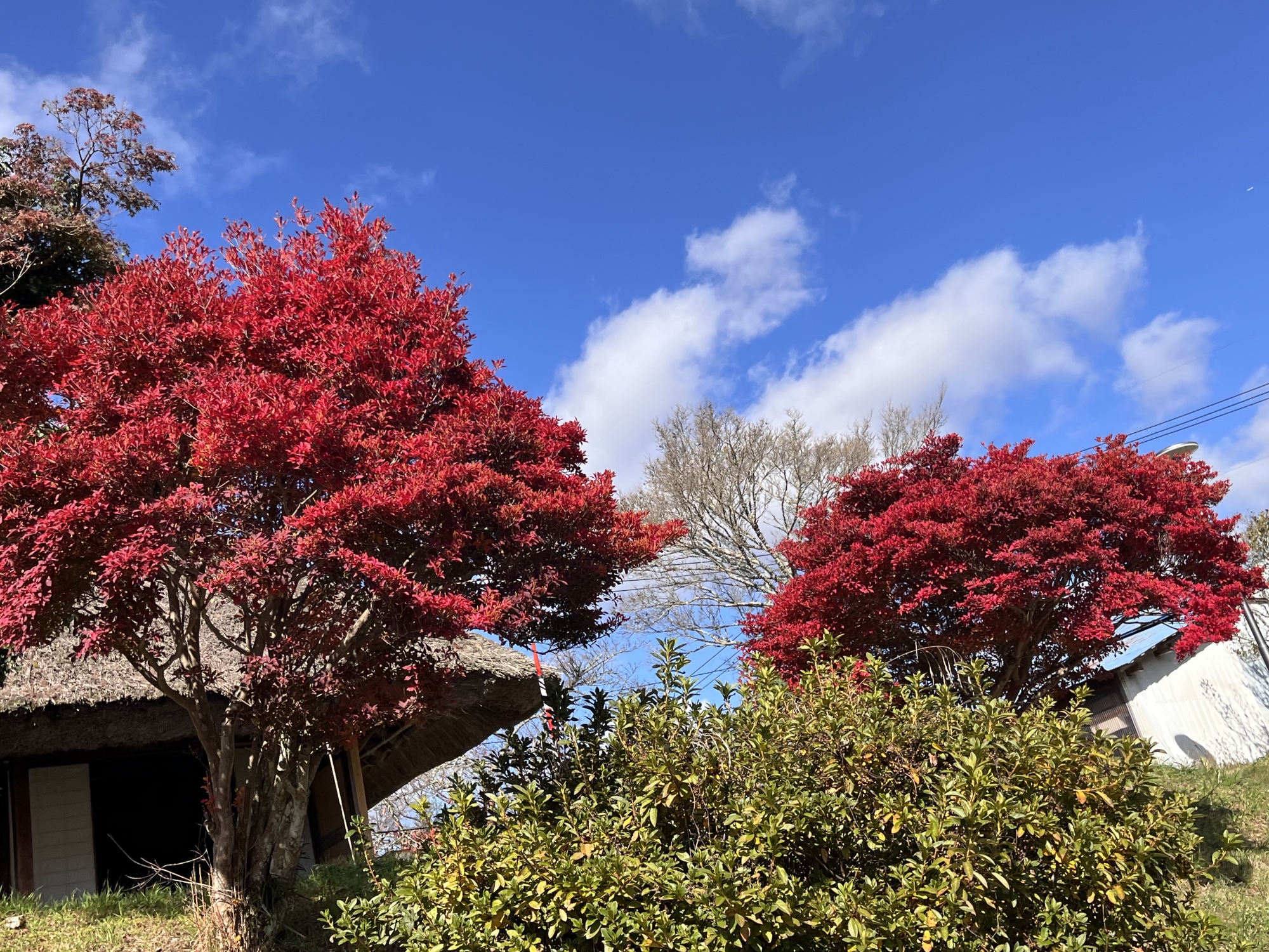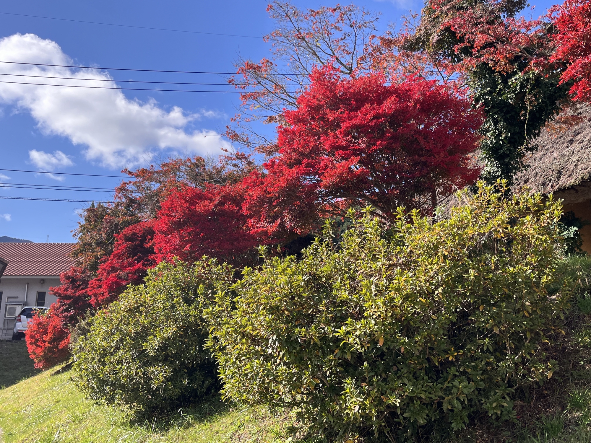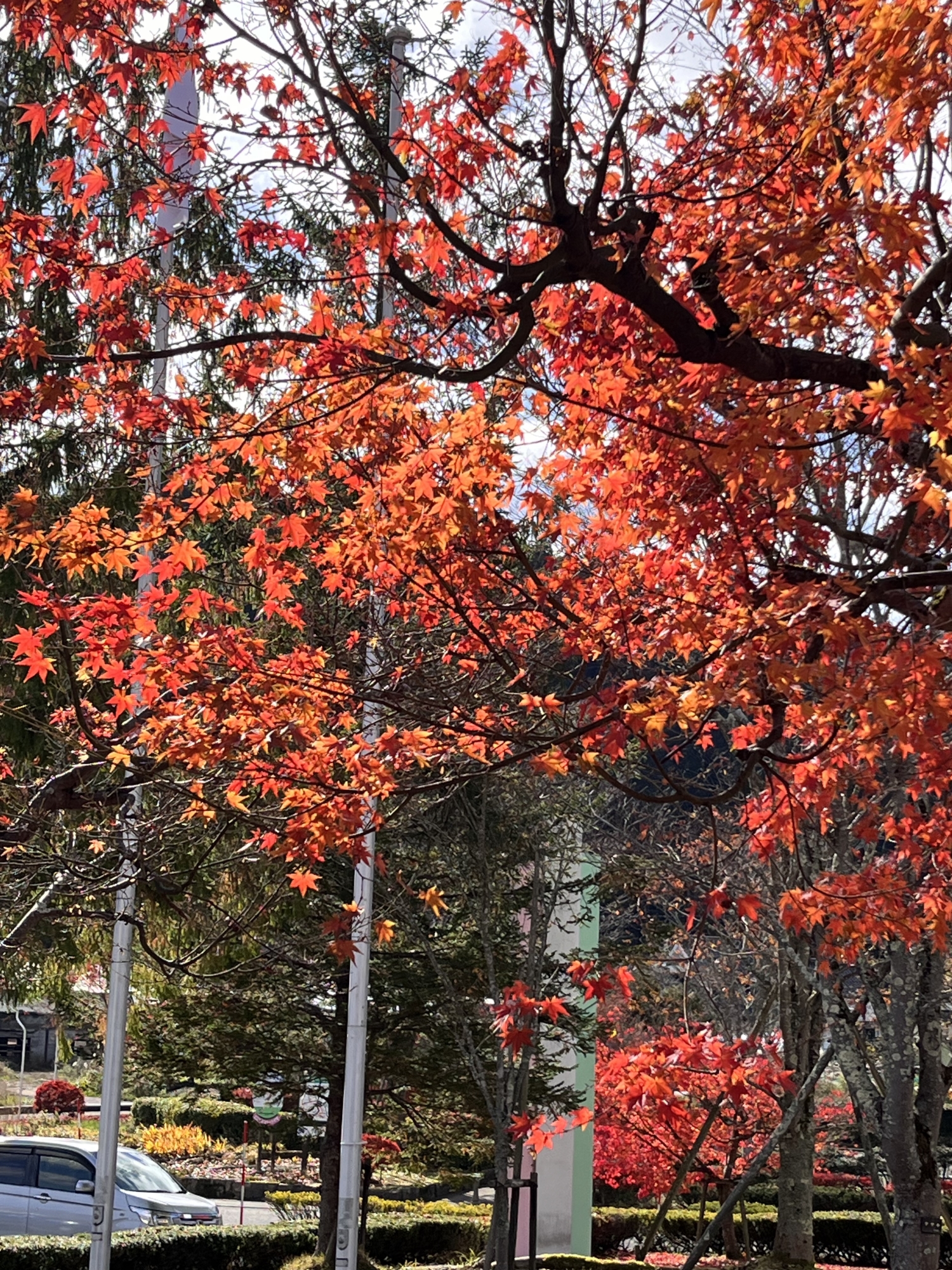 そして、笠杖山からの……交差点の所の紅葉(毎年、ふれあい公園より遅れて紅葉)。