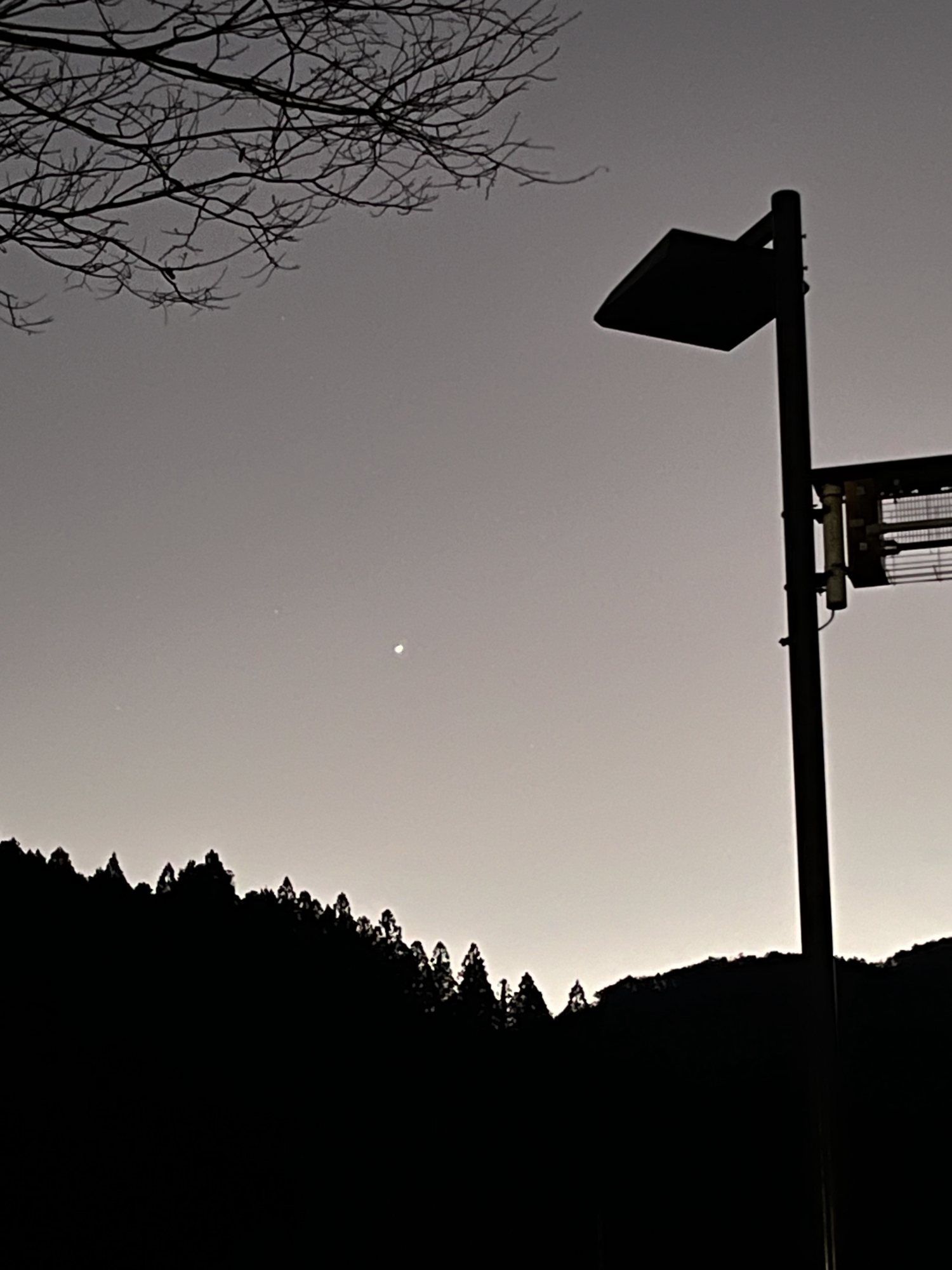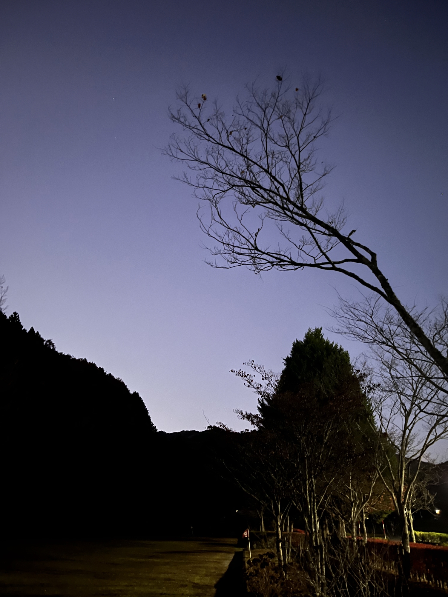 さて、夜です。まだ、小雨模様……寒くなってきた。