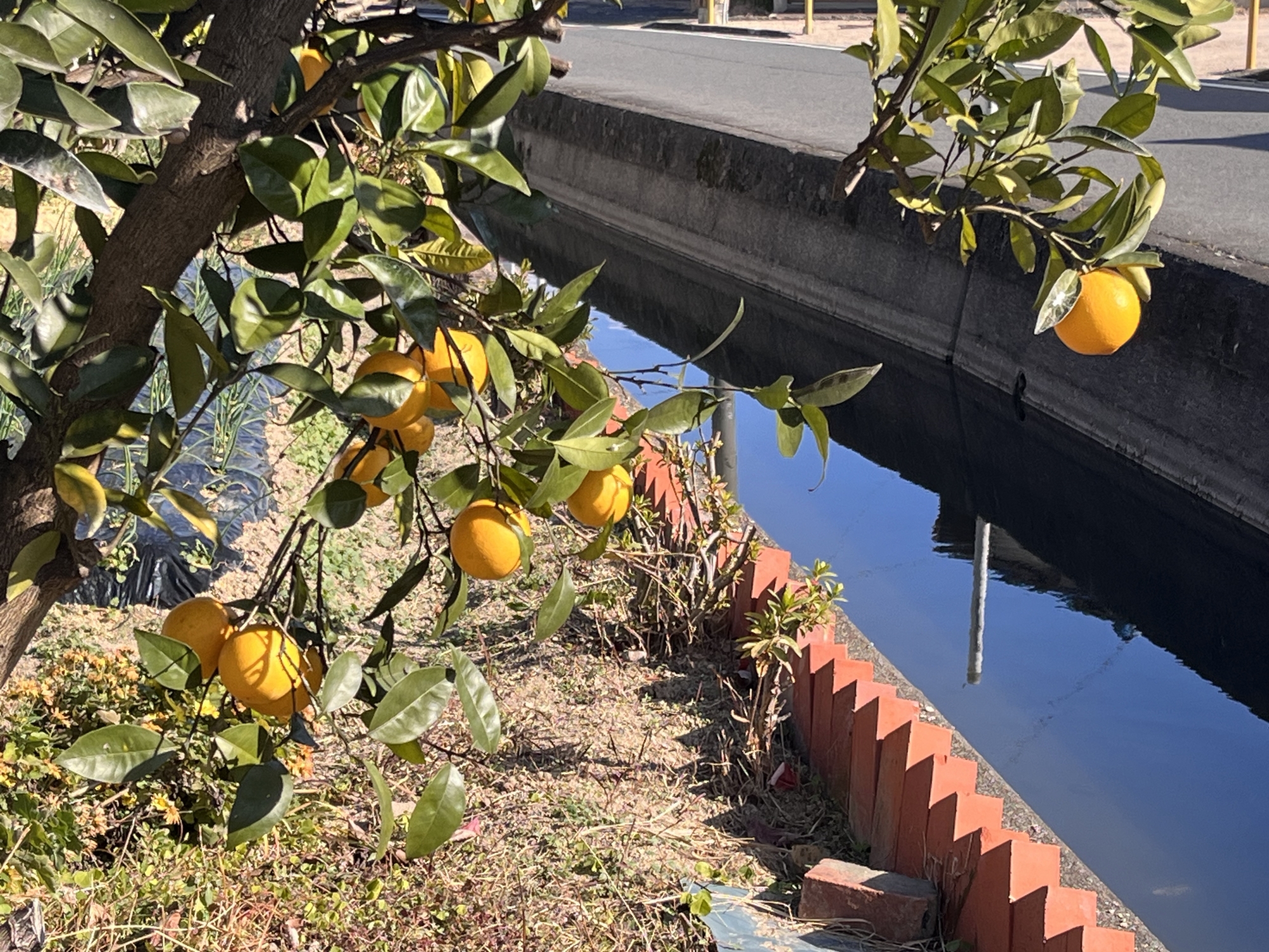用水路から、花々(ヒイラギとか、唐辛子とか)を見て、戻りましょう。