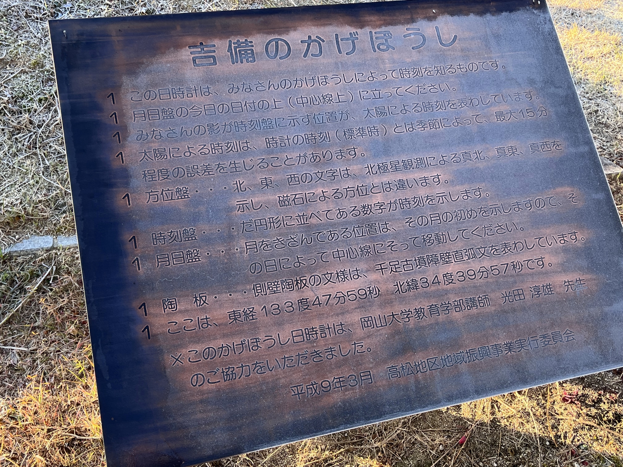 そして、造山古墳の近く~人が月名の位置に立つ事で、その影による日時計。ステキですね。