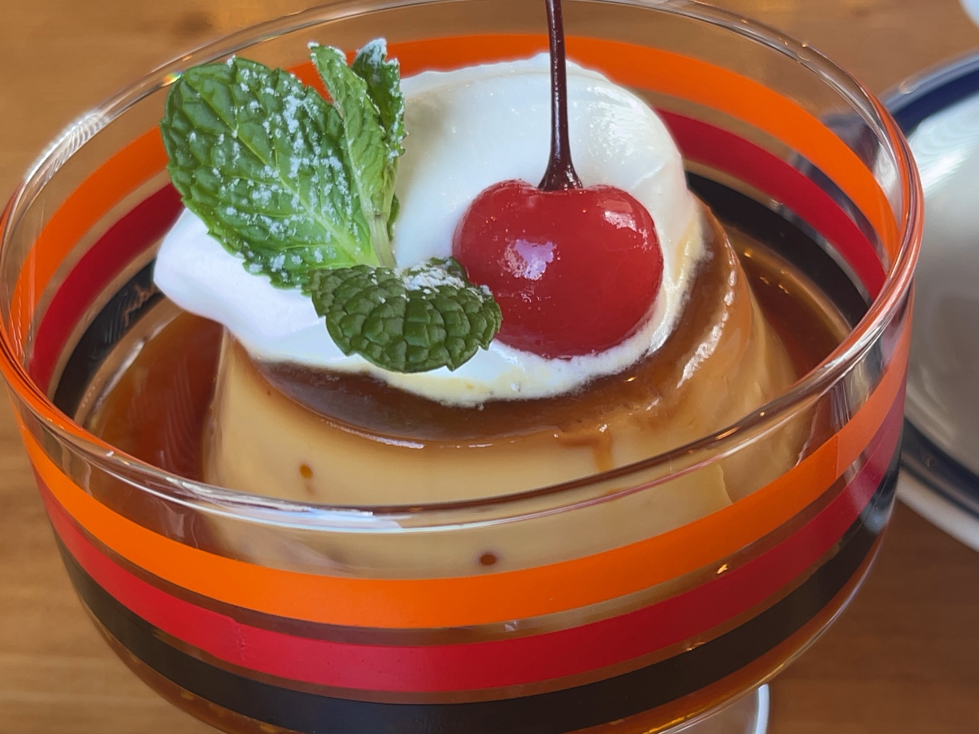 ここは2回目、スイーツはマフィンや、テリーヌ、コーヒーゼリー、そして、このプリン(硬め)~美味しい!! 珈琲は、富岡珈琲(真庭では有名)。