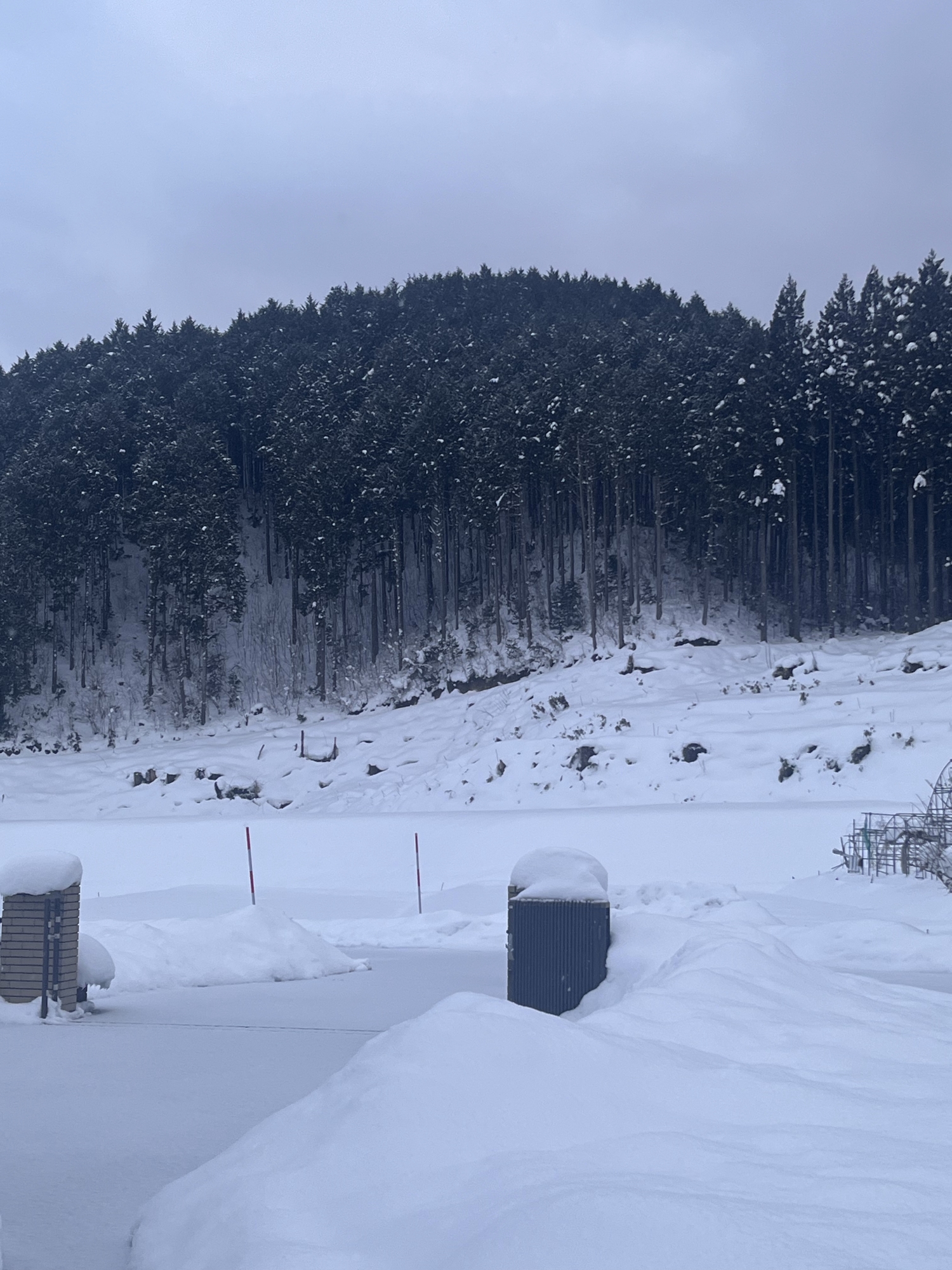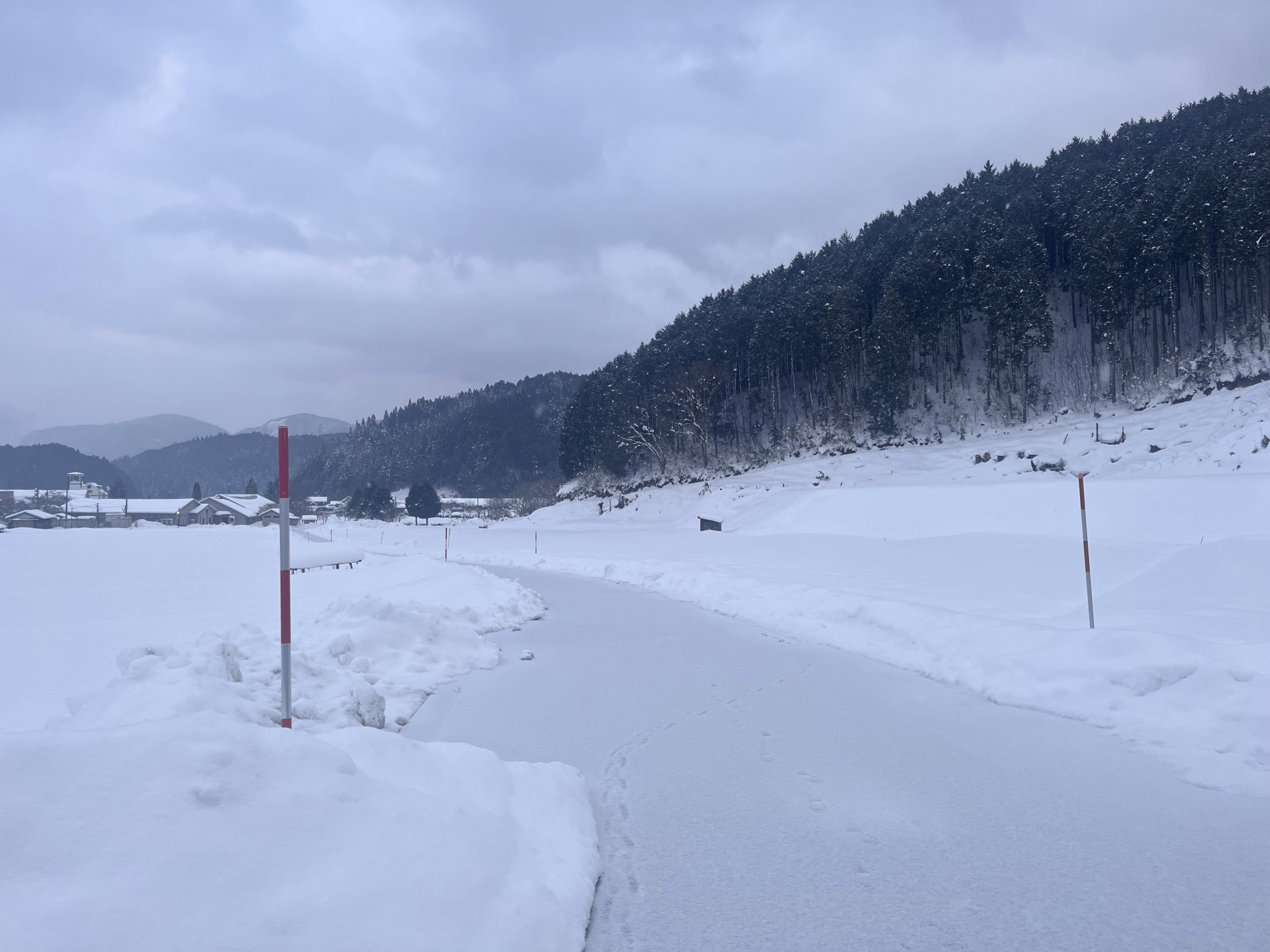 帰りは、早めに帰村しましたが、午後が暖かかったのか、あるいは、日が良く差していたのか……国道は雪が無かったのでした。