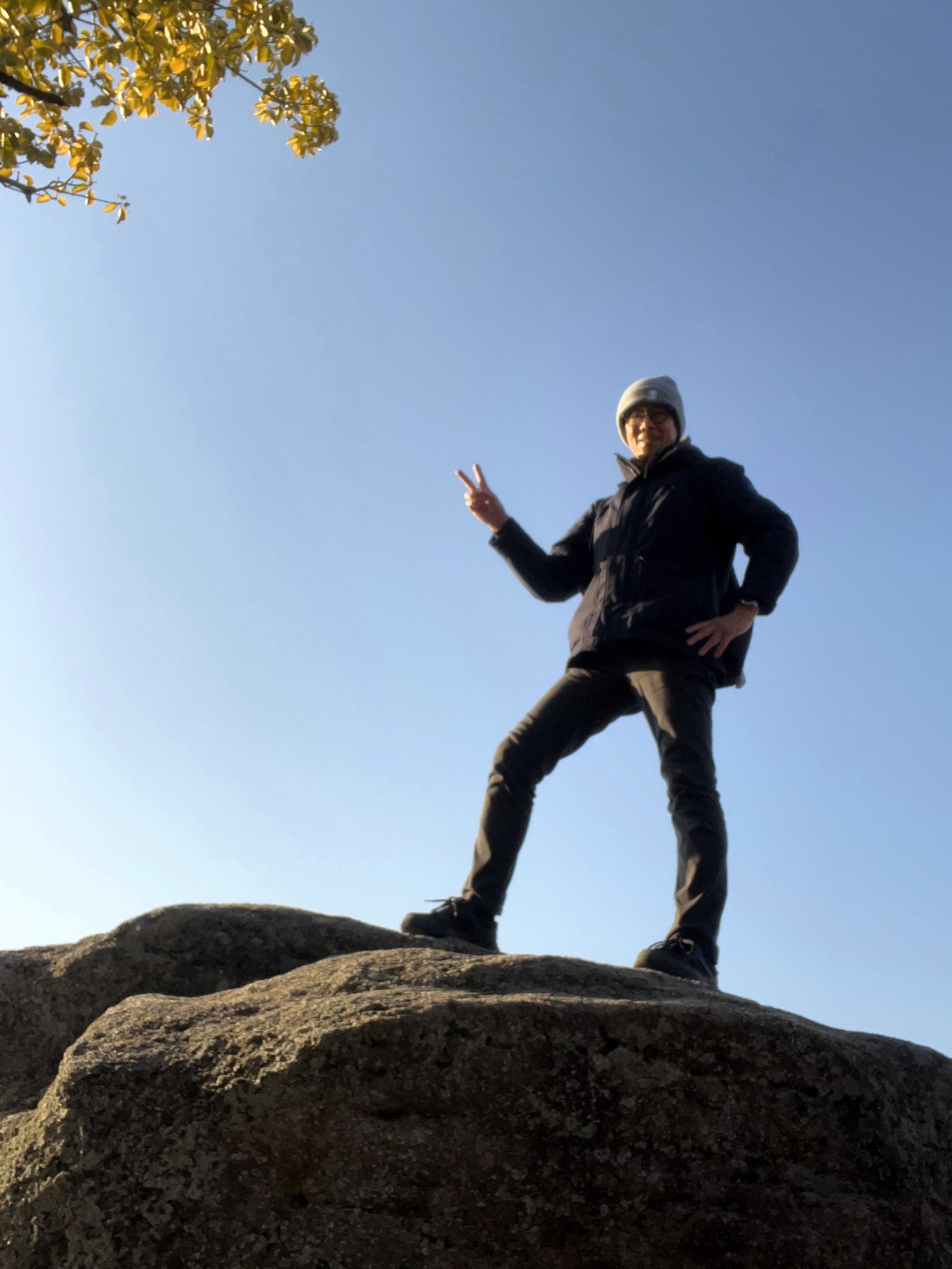 先ずは……ため池(結構、上の方なのに)……その横に、岩場が展望台です。