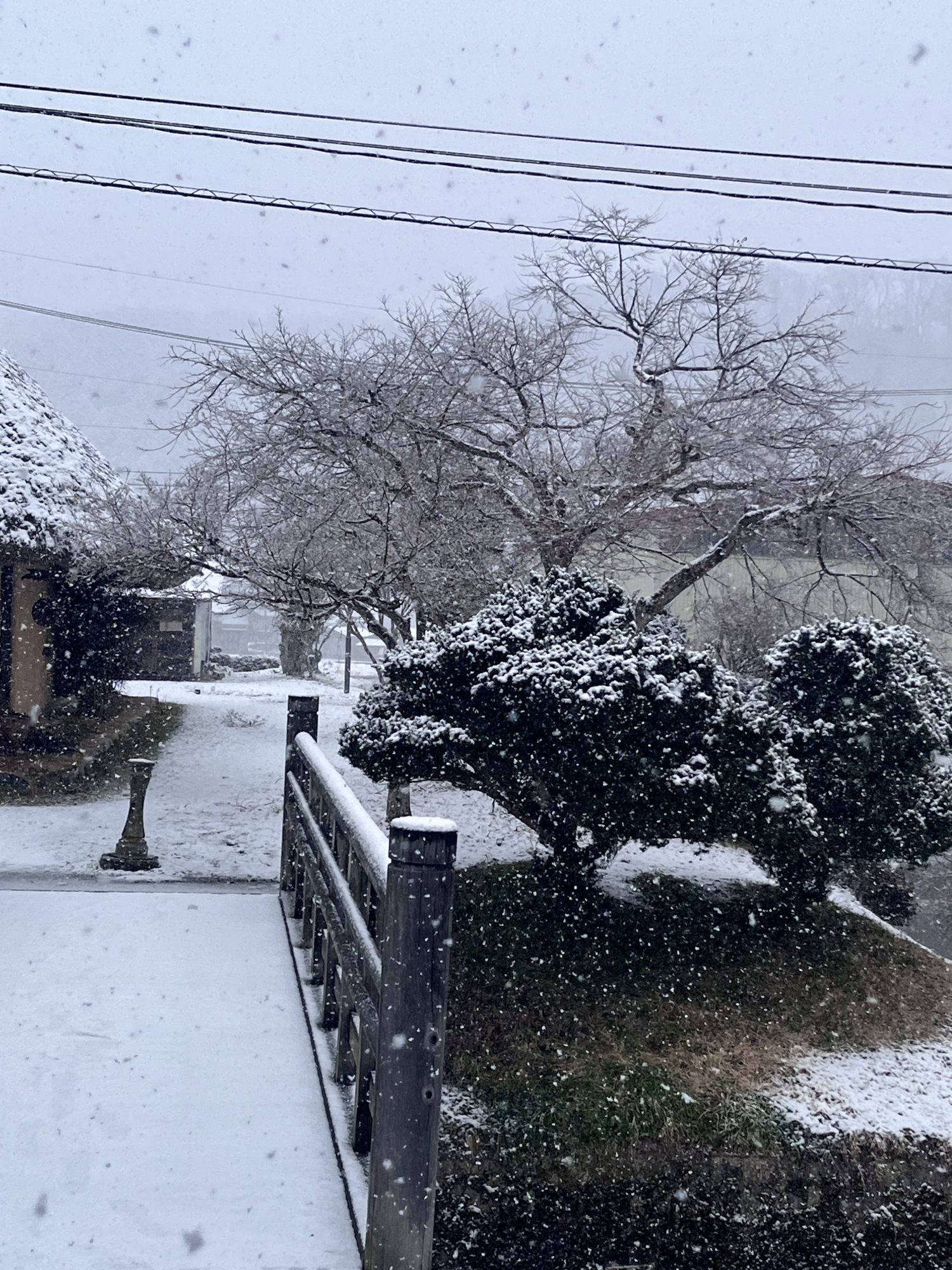 昼前……あら、結構、積もり始めました。