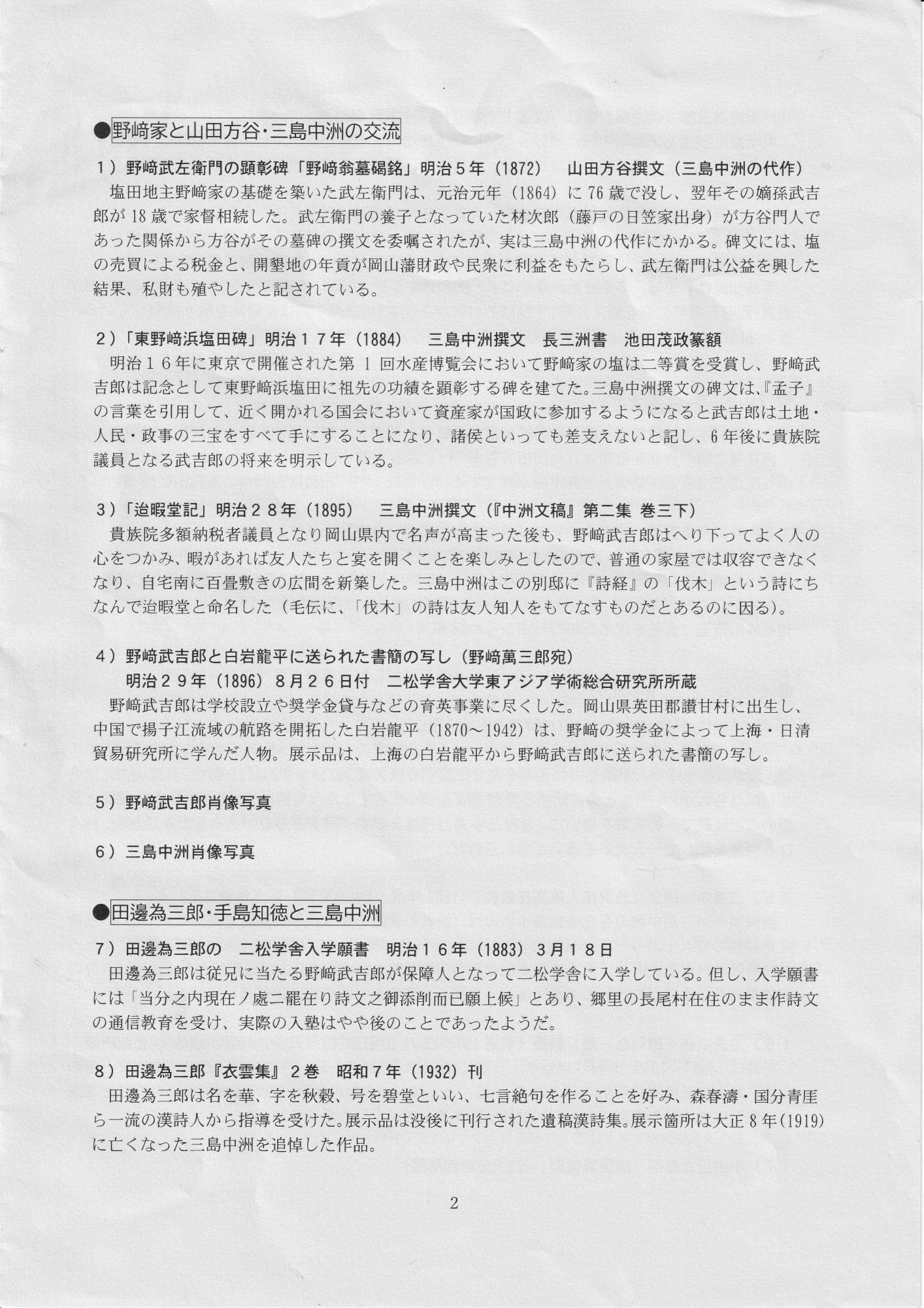 二松学舎大学による「備中漢学資料室」展。ー山田方谷・三島中洲とその周辺群像、の展示でした。