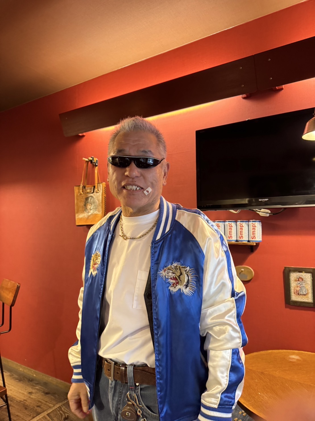 えへへ、サングラス、付けさせてもらいました。誰が、キヌア・リーブス?
