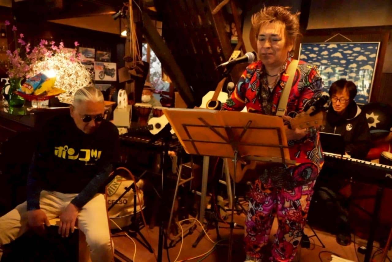 出演者、予定の最後から、予定の半分時間で逆回し。最初の予定のTAKATOMOさんがフルに演って、元順で、また戻すってことになりました。後半は、天候も回復し、お客様にも入って頂き、楽しいLIVE「おっ花見LIVE」になりました。