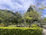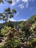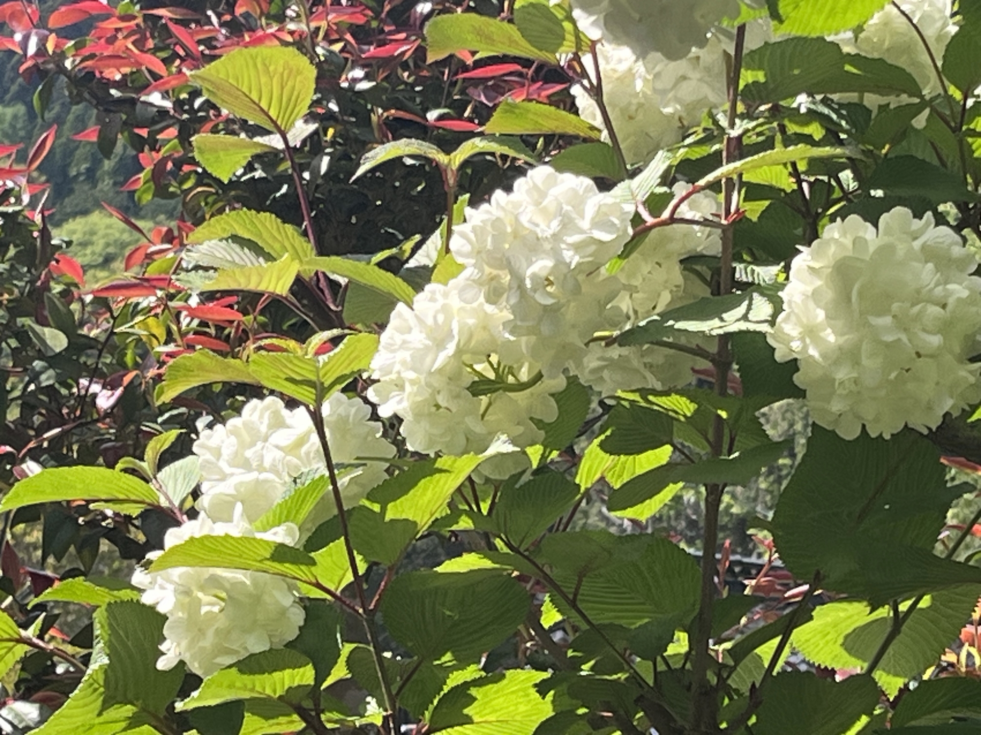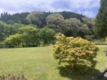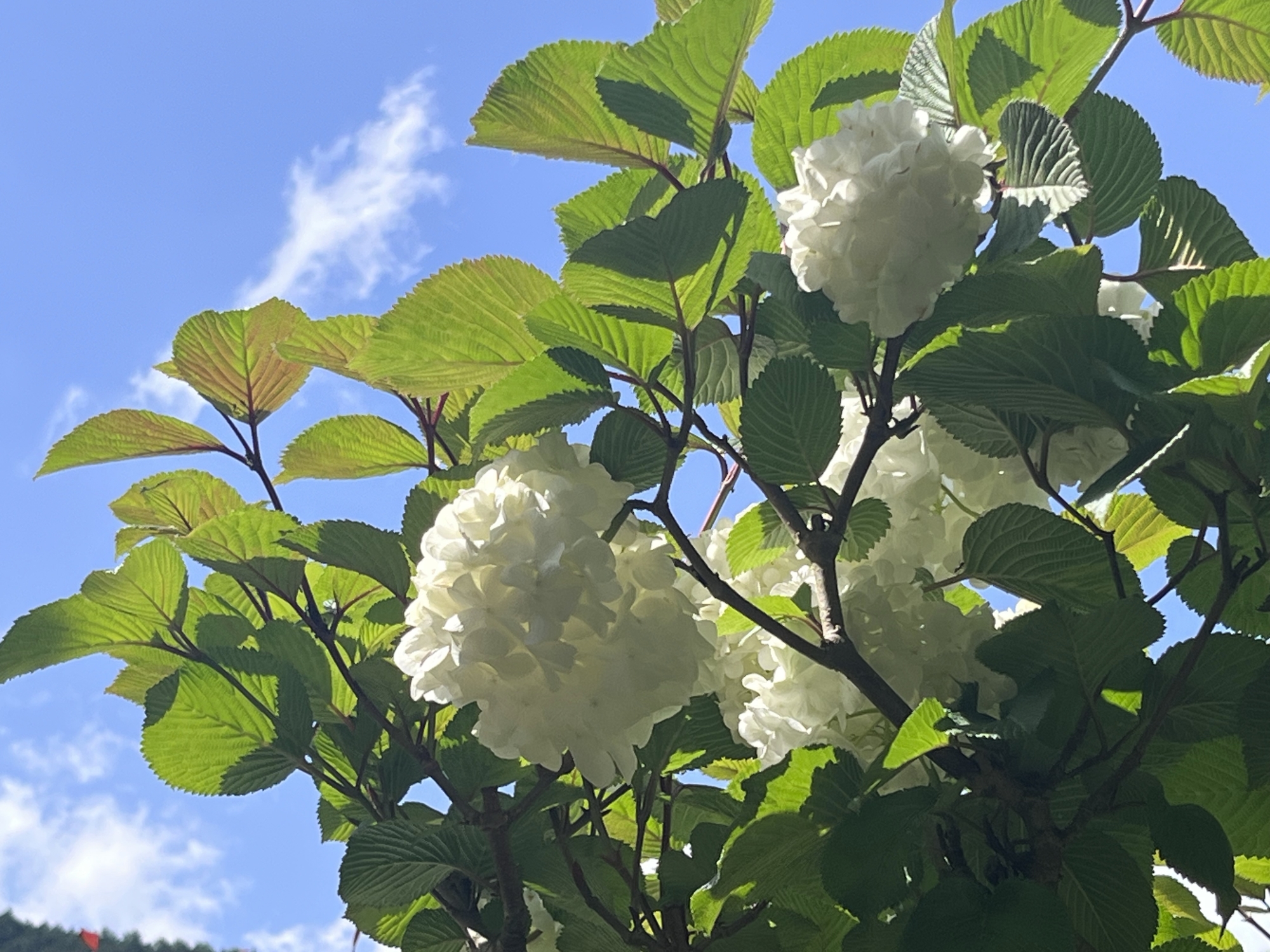 日が差して、緑と青が美しい.